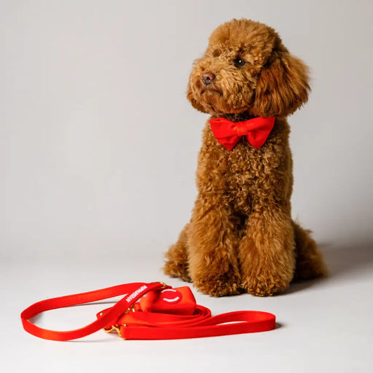 Sametový obojek s motýlkem pro psa – červený