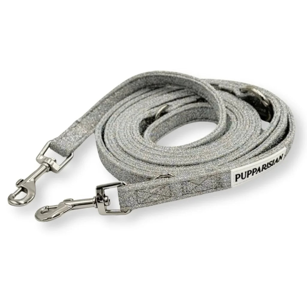 Univerzálnost a elegance v jednom – přepínací vodítko Glamour je ideální volbou pro každou příležitost. Vyrobené z lesklého stříbrného materiálu zaujme svým luxusním designem a je doplněné odolným stříbrným kováním. Díky třem přepínáním lze snadno nastavit délku od 3 metrů do 1,5 metru, takže se skvěle hodí jak na městské procházky, tak i na delší výlety.