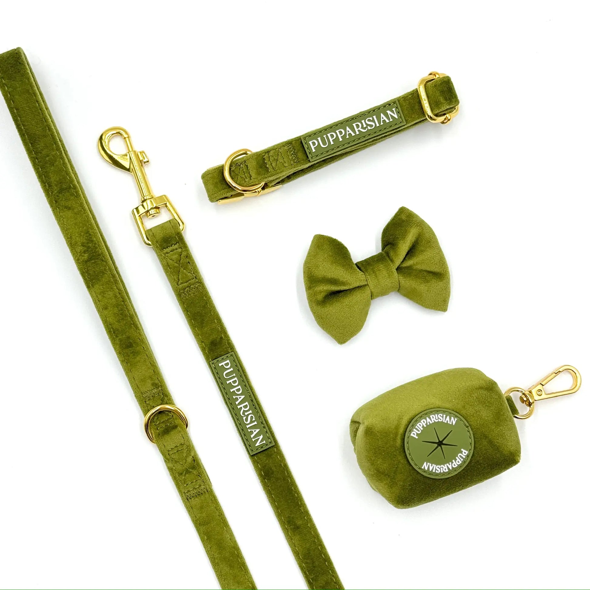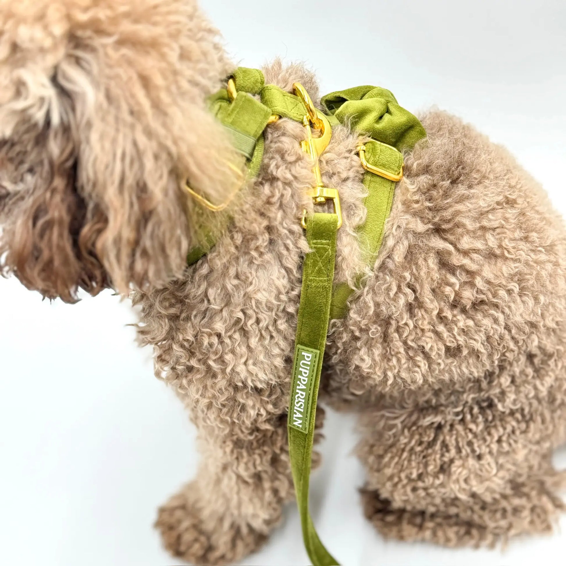 Luxusní sametové vodítko v olivově zelené barvě značky Pupparisian je ideálním doplňkem pro elegantní procházky po městě. Vyrobené z měkkého, ale odolného sametu nabízí pohodlí a plnou kontrolu nad psem, přičemž zajišťuje maximální komfort při používání. Stylový design v kombinaci s vysokou funkčností dělá z vodítka nepostradatelnou součást výbavy každého psa. Délka 190 cm poskytuje dostatečnou volnost pohybu a zároveň bezpečí. Zlaté kovové kování dodává vodítku eleganci i dlouhou životnost.