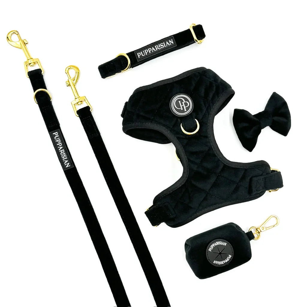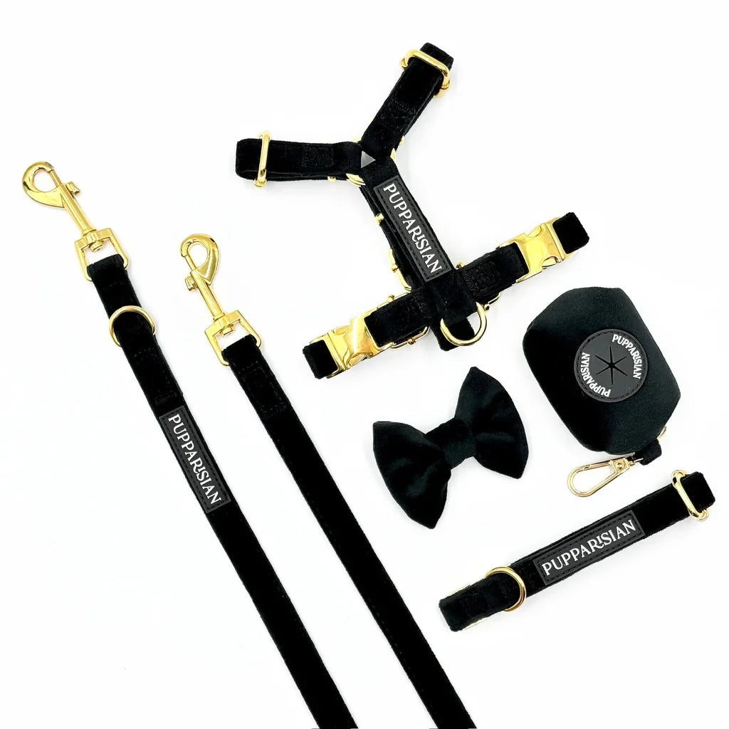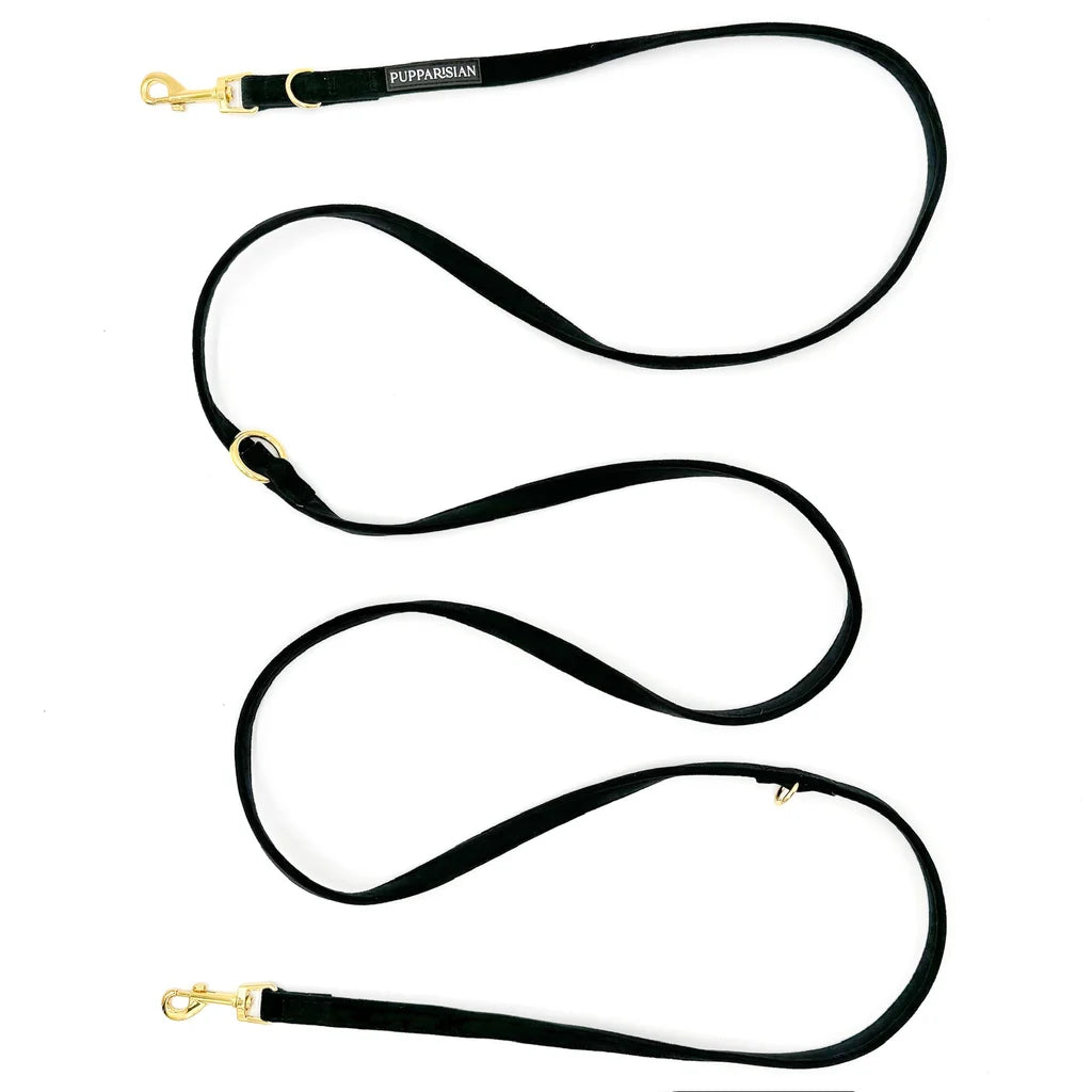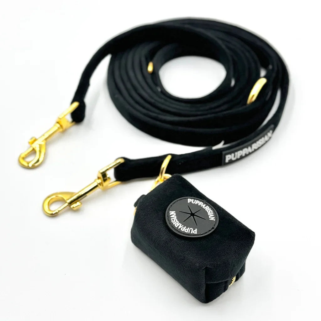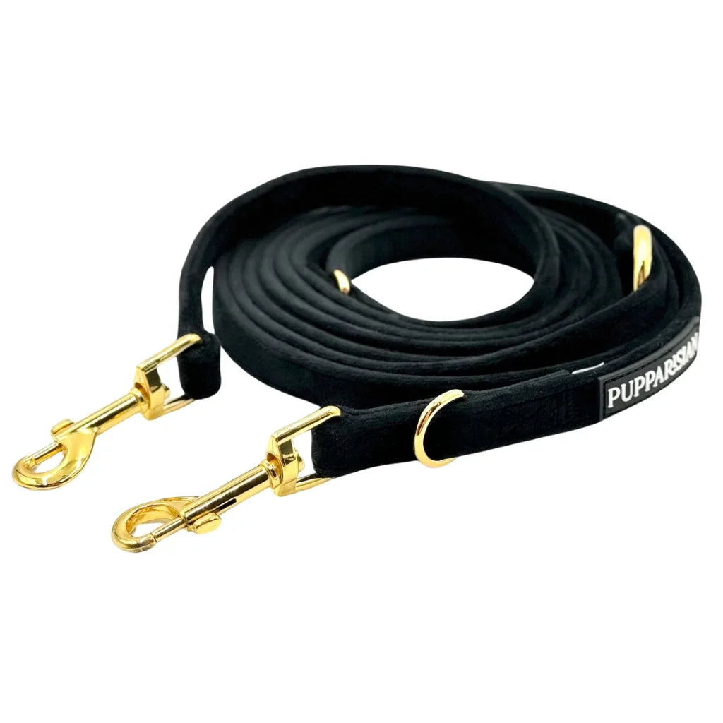 Luxusní přepínací vodítko značky Pupparisian v černé barvě je univerzálním a elegantním doplňkem pro každého psa. S délkou 3 metry nabízí různé možnosti použití – od procházek v parku, přes tréninky až po návštěvy u veterináře. Vyrobené z prvotřídního sametu spojuje odolnost s pohodlím při používání. Zlaté kovové kování dodává vodítku eleganci i pevnost, zatímco spolehlivé zapínání zajišťuje bezpečnost. Ideální volba pro majitele, kteří ocení styl i funkčnost.