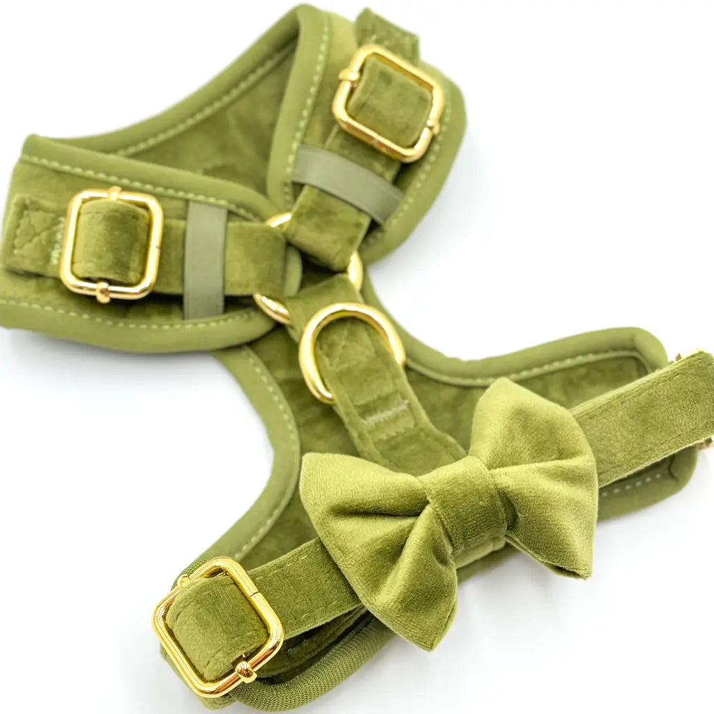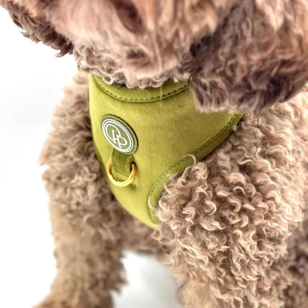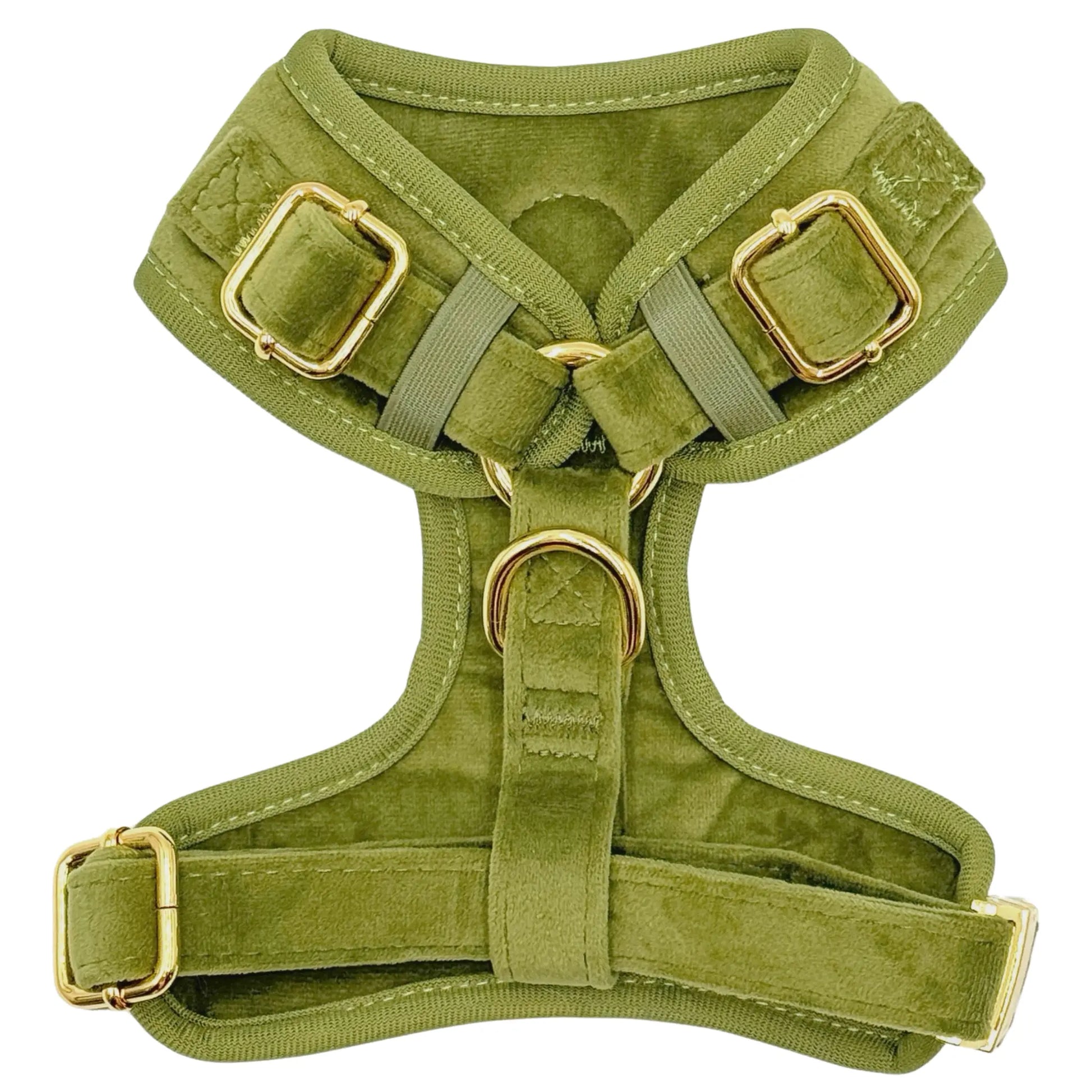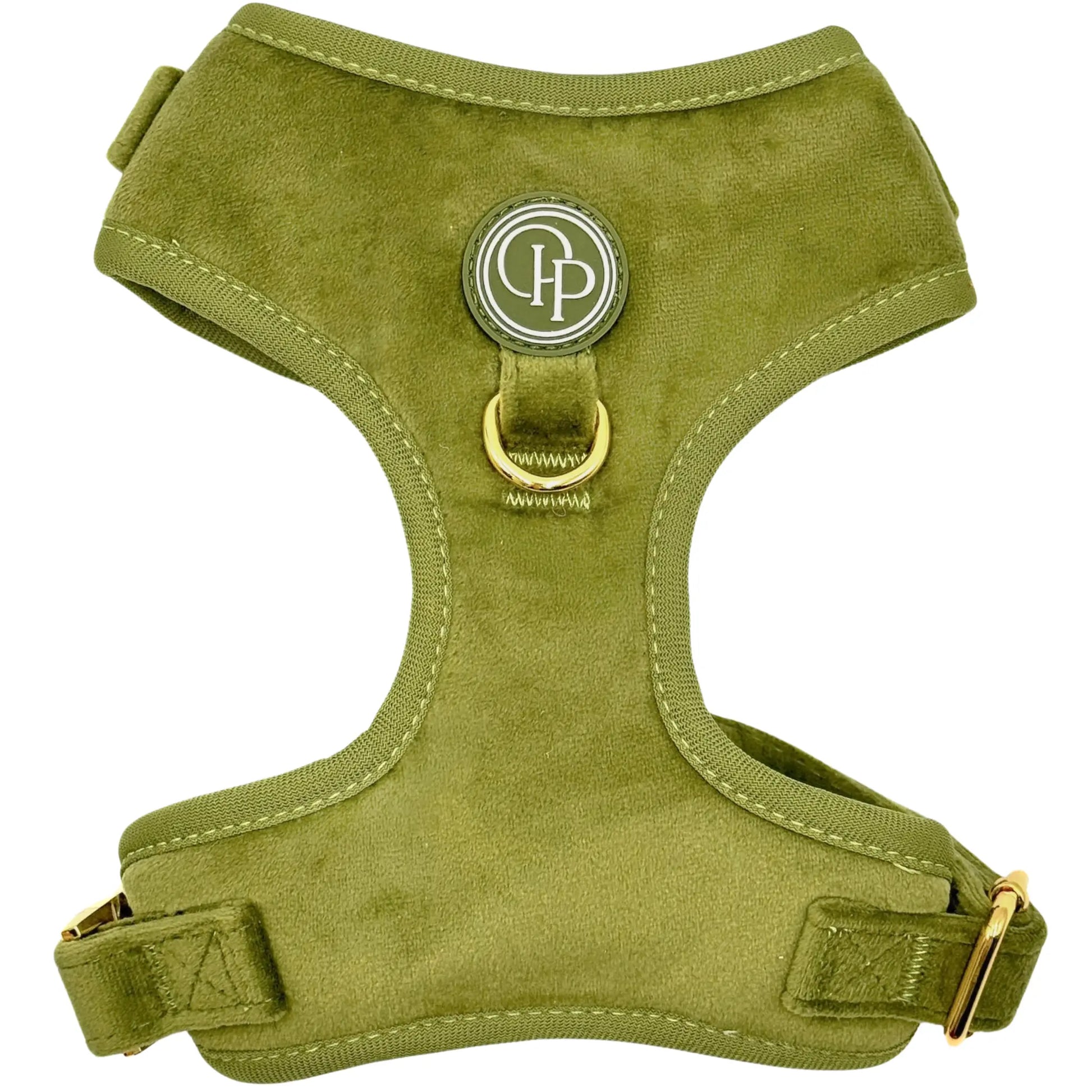 Sametový beztlakový postroj pro psa v olivově zelené barvě je ideálním řešením pro malé a střední psy, kteří si potrpí na pohodlí i styl. Vyrobený z nejkvalitnějšího sametu je mimořádně měkký a šetrný k psí pokožce, čímž minimalizuje riziko oděrek a podráždění. Beztlakové provedení zajišťuje maximální komfort a elegantní vzhled postroje zaručí, že váš pes vynikne při každé procházce. Postroj je navíc snadno nastavitelný, takže jej lze perfektně přizpůsobit postavě psa. Zlaté kovové kování dodává postroji luxusní charakter.