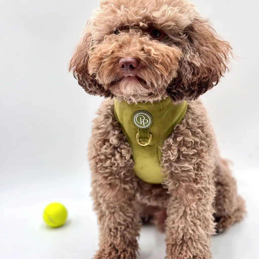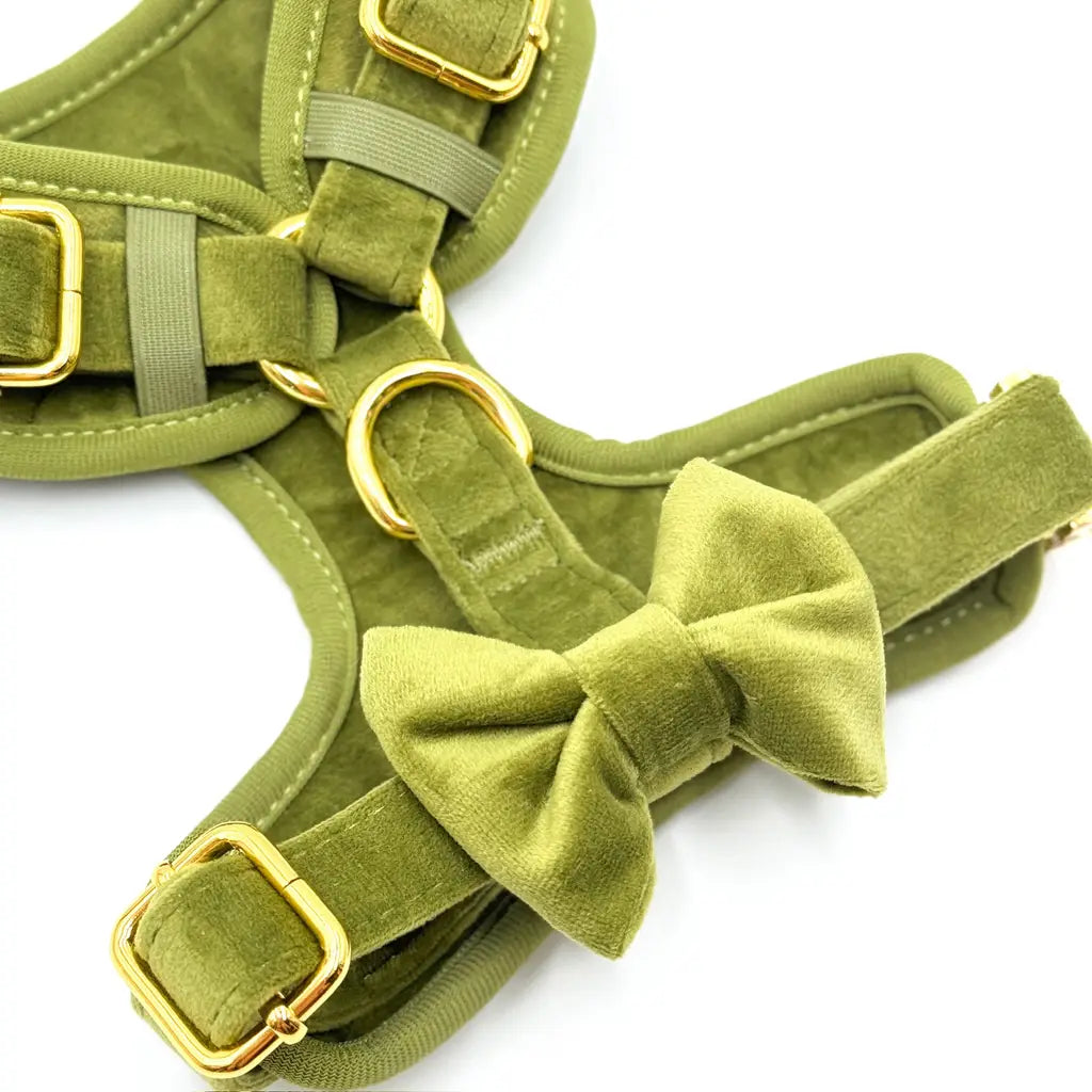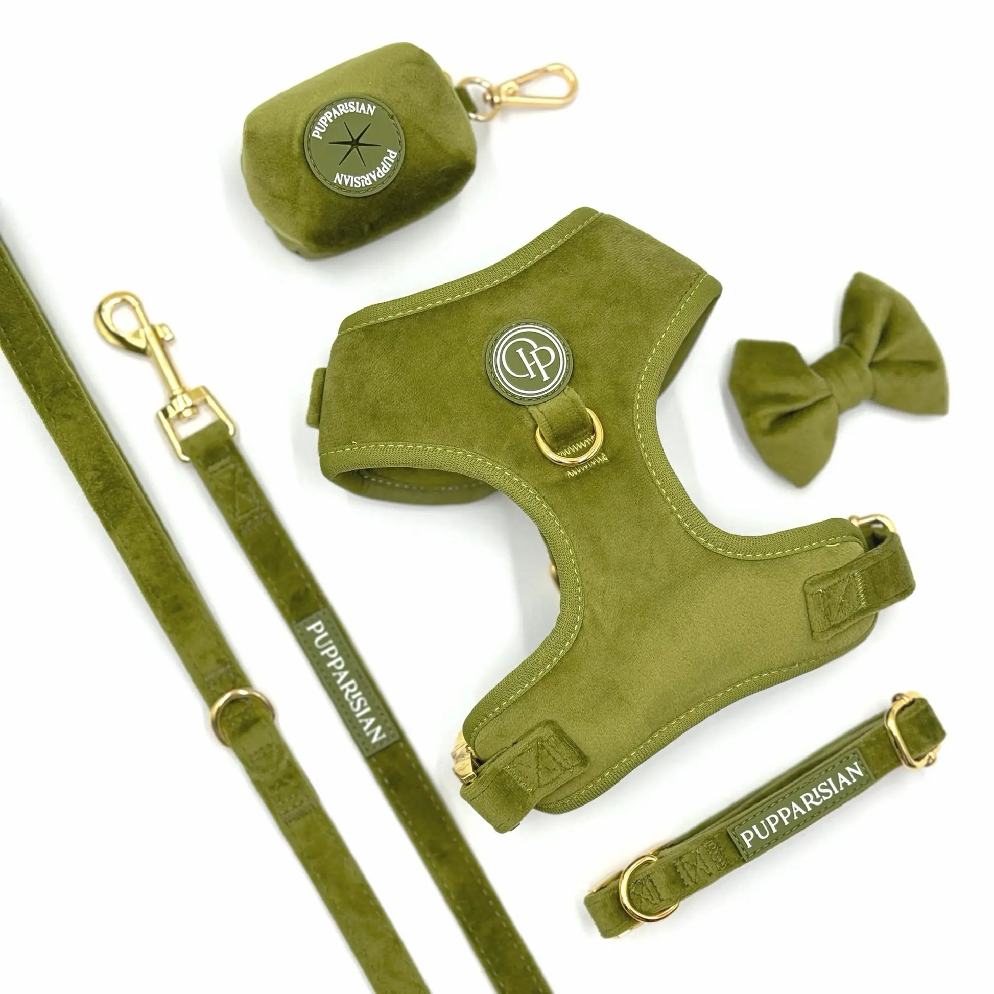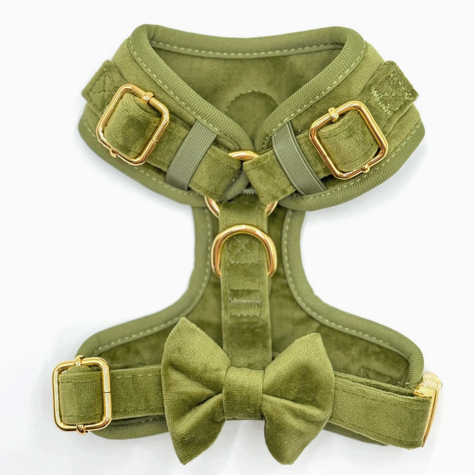 Sametový beztlakový postroj pro psa v olivově zelené barvě je ideálním řešením pro malé a střední psy, kteří si potrpí na pohodlí i styl. Vyrobený z nejkvalitnějšího sametu je mimořádně měkký a šetrný k psí pokožce, čímž minimalizuje riziko oděrek a podráždění. Beztlakové provedení zajišťuje maximální komfort a elegantní vzhled postroje zaručí, že váš pes vynikne při každé procházce. Postroj je navíc snadno nastavitelný, takže jej lze perfektně přizpůsobit postavě psa. Zlaté kovové kování dodává postroji luxusní charakter.