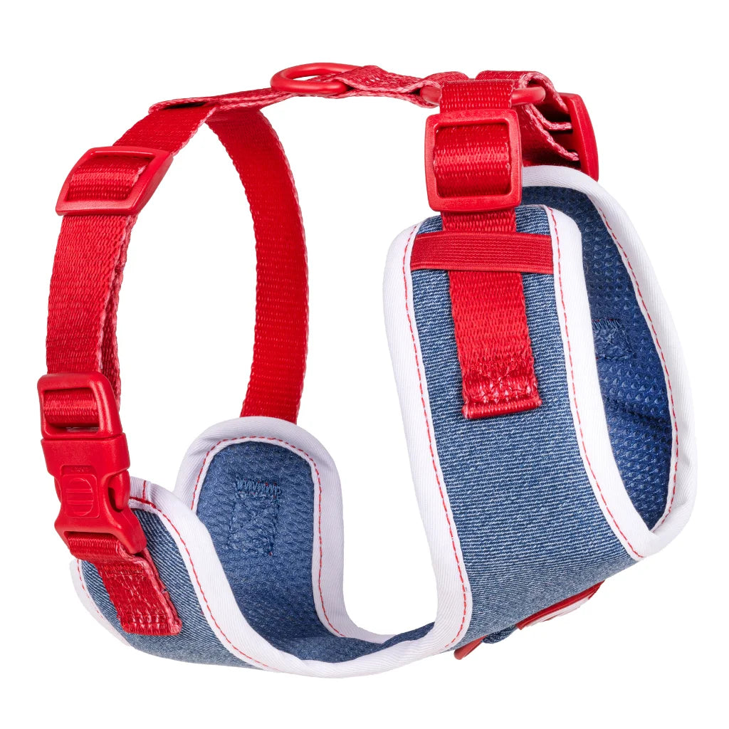 Denim nikdy nevyjde z módy – a nyní ani při procházkách. Naše jeansové beztlakové postroje z kolekce Funky jsou odpovědí na potřeby psů, pro které je pohodlí při venčení klíčové, a zároveň splňují očekávání majitelů, kteří si potrpí na styl. Plastové prvky ladící s červenými detaily dělají z postroje moderní a velmi lehký doplněk.