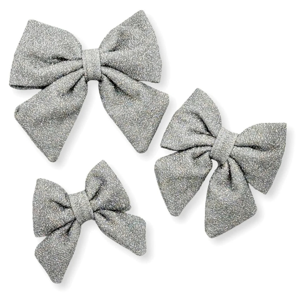 Motýlek pro psa – stříbrný lesklý