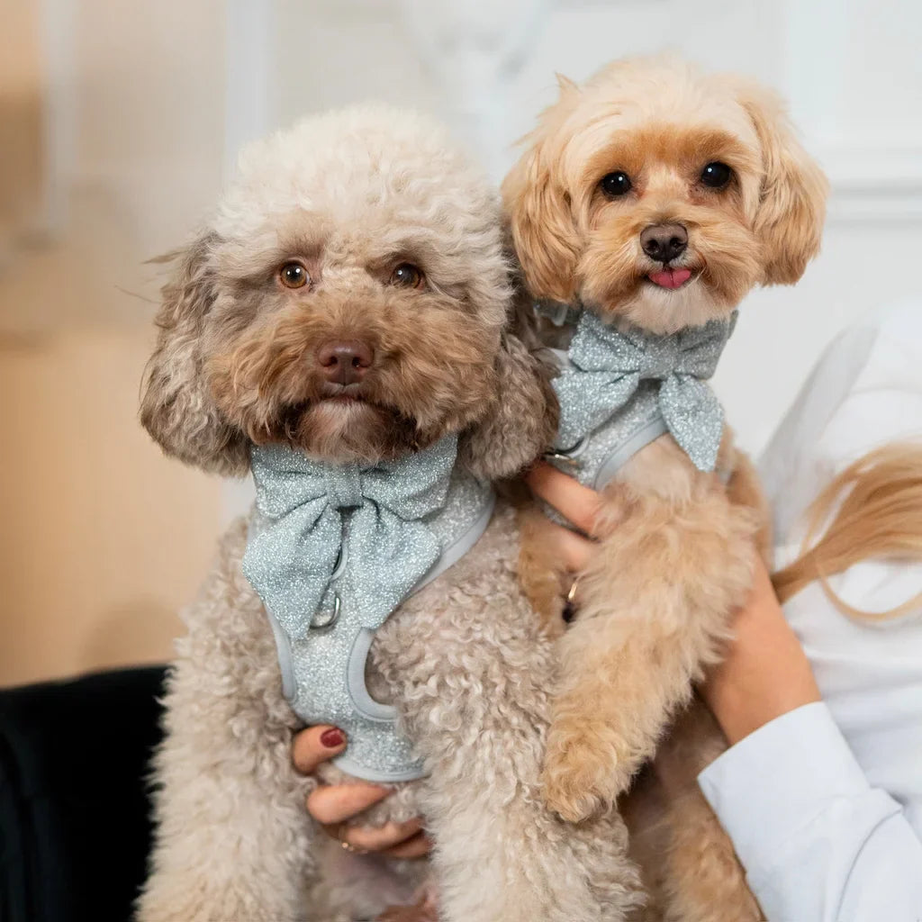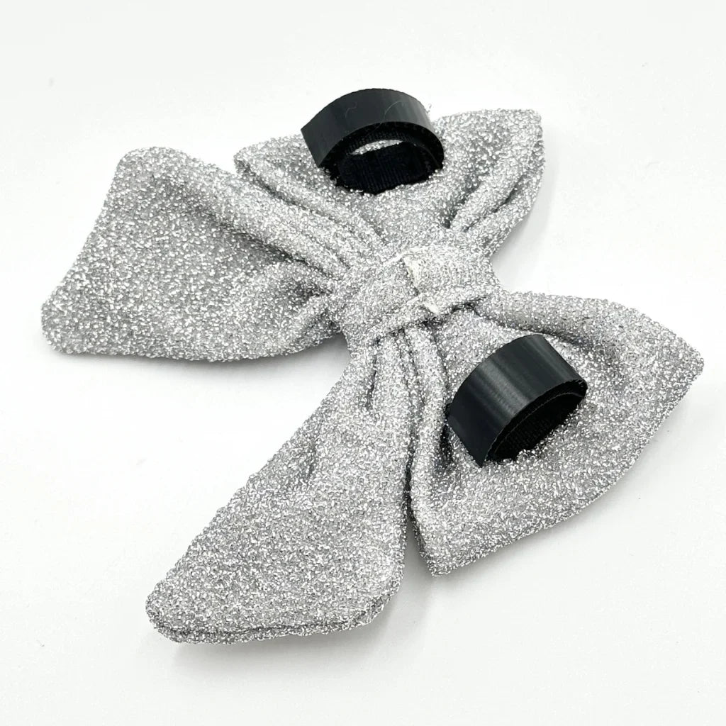 Podtrhněte styl svého pejska se stříbrným motýlkem Glamour. Tento výjimečný doplněk je ideální volbou pro speciální příležitosti – od svátečních večeří až po elegantní oslavy. Vyrobený z látky se stříbrným leskem okouzlí svým vytříbeným vzhledem a elegantním tvarem.