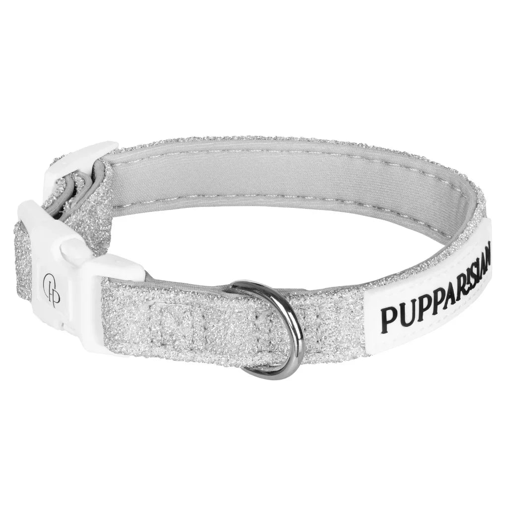 Dodejte svému pejskovi punc elegance se stříbrným obojkem Glamour. Vyrobený z třpytivého materiálu se stříbrnou nití přitahuje pozornost a dodává šmrnc každému outfitu. Lesklé provedení je mimořádně módní a zároveň univerzální – hodí se jak na každodenní procházky, tak i na výjimečné příležitosti.