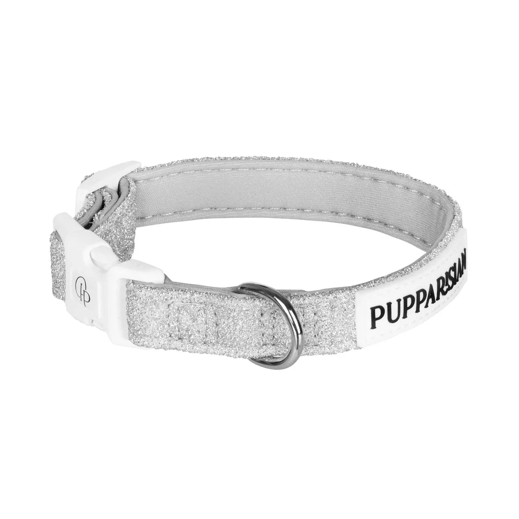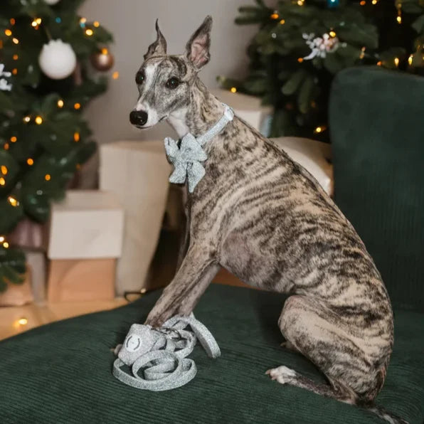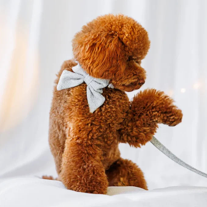 Váš pejsek si zaslouží špetku luxusu. Stříbrný obojek s motýlkem Glamour je doplněk, díky kterému se váš mazlíček stane hvězdou každého setkání. Vyrobený z třpytivého materiálu se stříbrnou nití přitahuje pohledy a dokonale zapadá do nejnovějších trendů. Motýlek je výrazným prvkem, který dělá tento obojek jedinečným – elegantní, stylový a zároveň praktický, protože jej lze díky suchým zipům snadno odepnout.