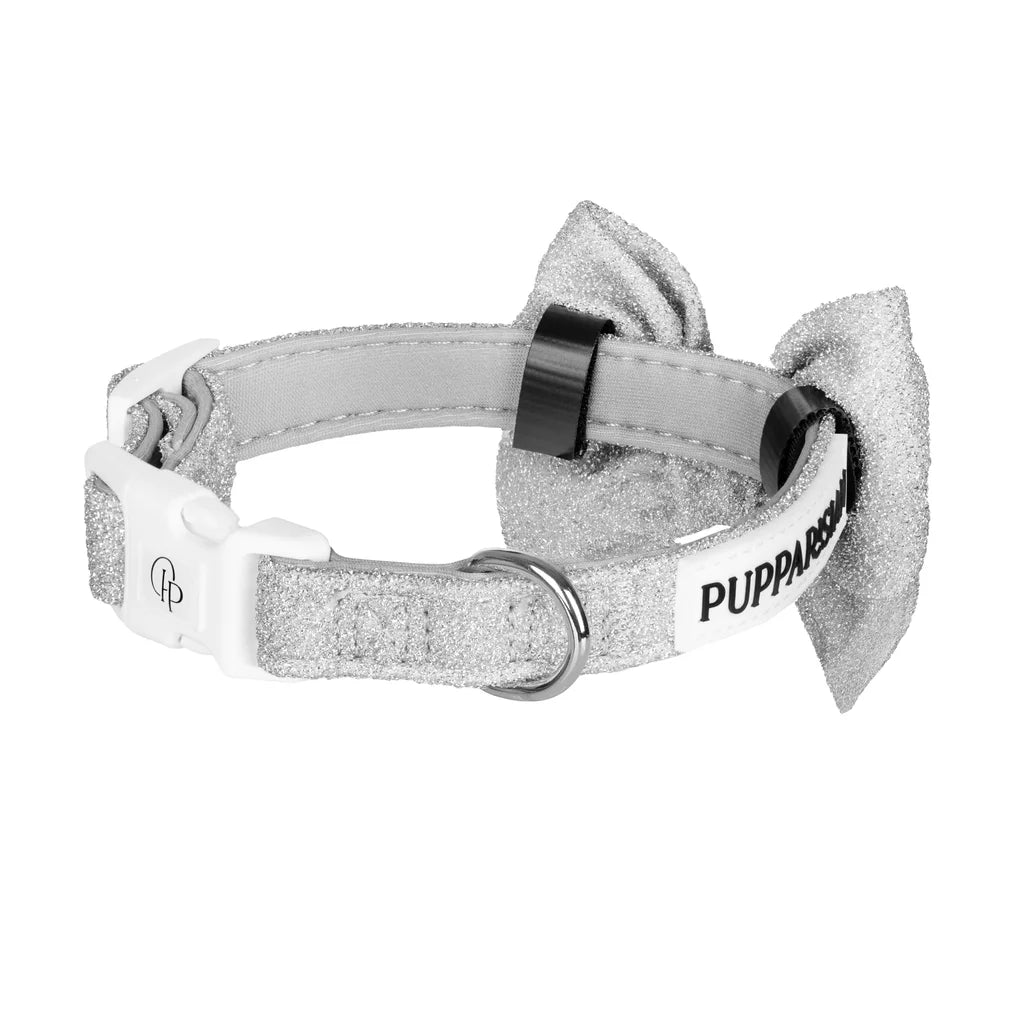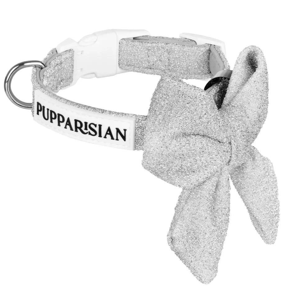 Obojek s motýlkem pro psa – stříbrný lesklý