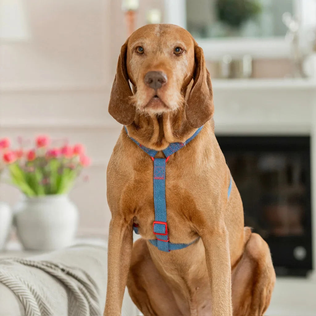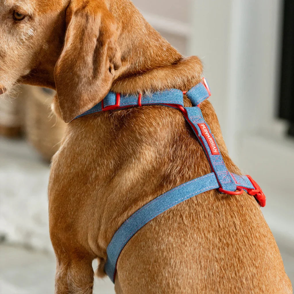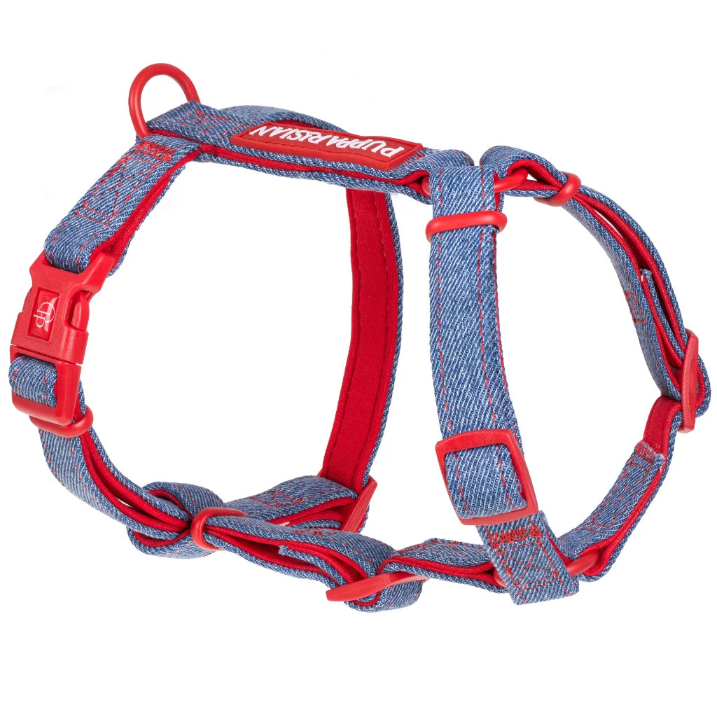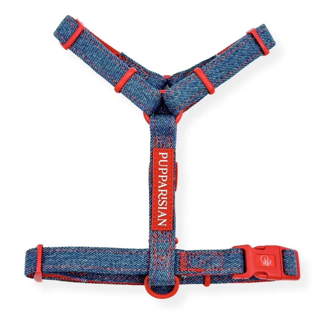 Bestsellerový postroj typu guard s mašlí od Pupparisian je nyní k dispozici i v jeansové verzi. Dopřejte svému mazlíčkovi pohodlný a stylový outfit na každodenní procházky. Postroj z kolekce Funky odpovídá nejnovějším trendům – klasický denim je oživen červenými detaily, které dodávají výjimečný charakter. Mašle v bílo-červené kostce přidává nezaměnitelné kouzlo a díky suchým zipům ji lze snadno odepnout nebo připnout jiným způsobem.