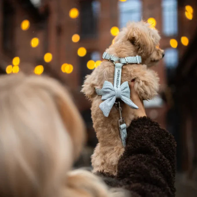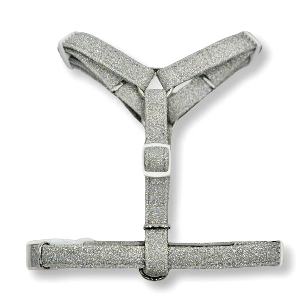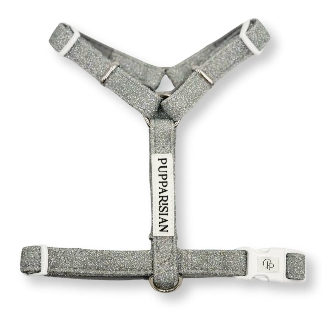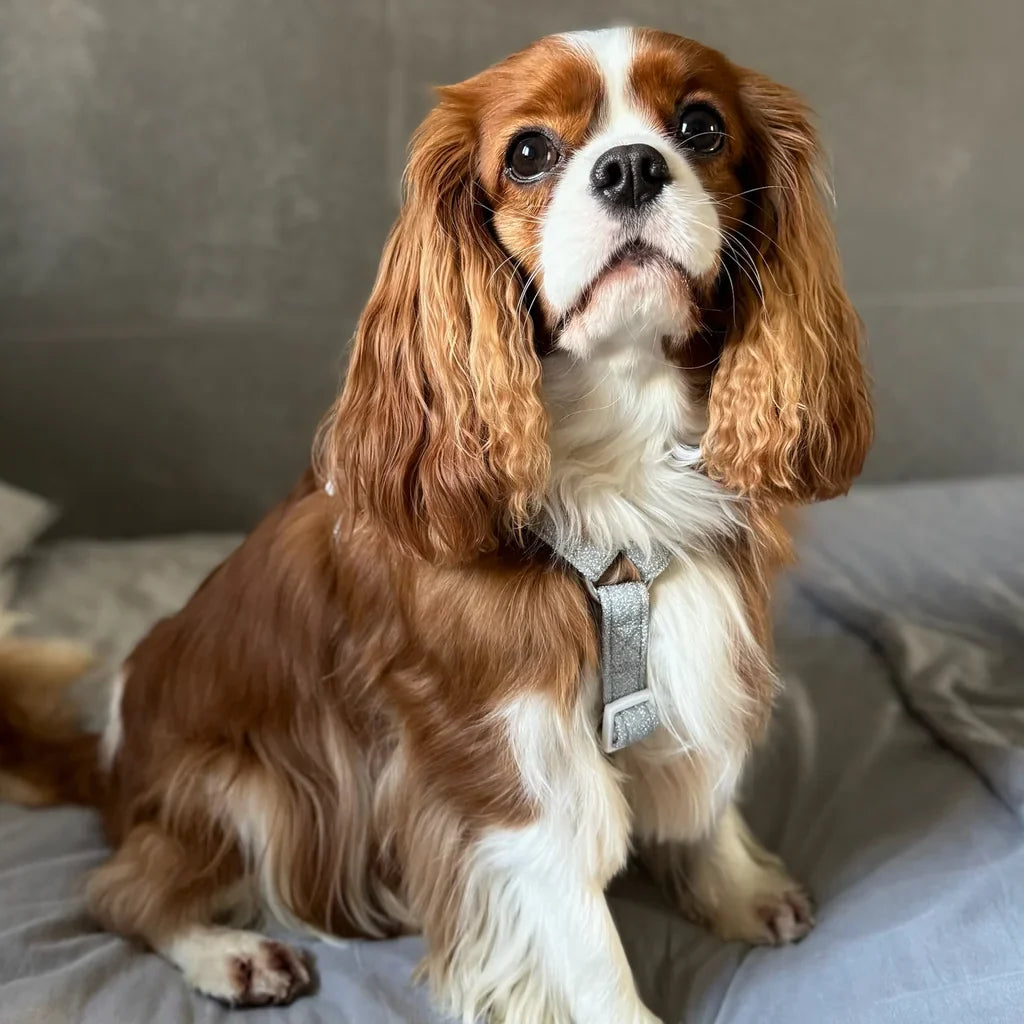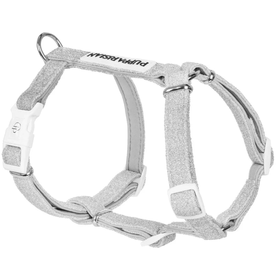 V postroji typu guard z kolekce Glamour může být váš pejsek elegantní při každé příležitosti. Třpyt a extravagance vás budou provázet nejen během výjimečných událostí, ale i na každodenních procházkách. Materiál postroje je vyrobený ze stříbrné nitě, takže se nemusíte obávat opadávajících třpytek.