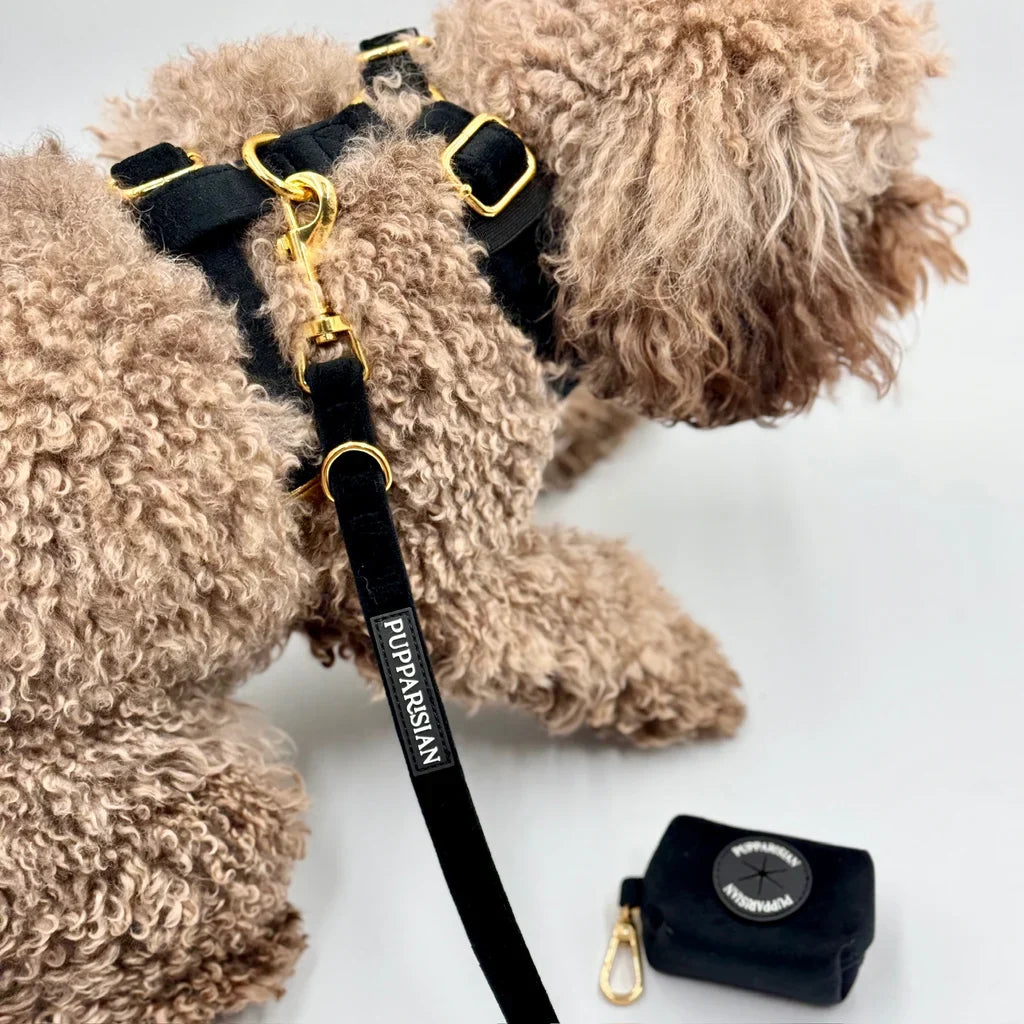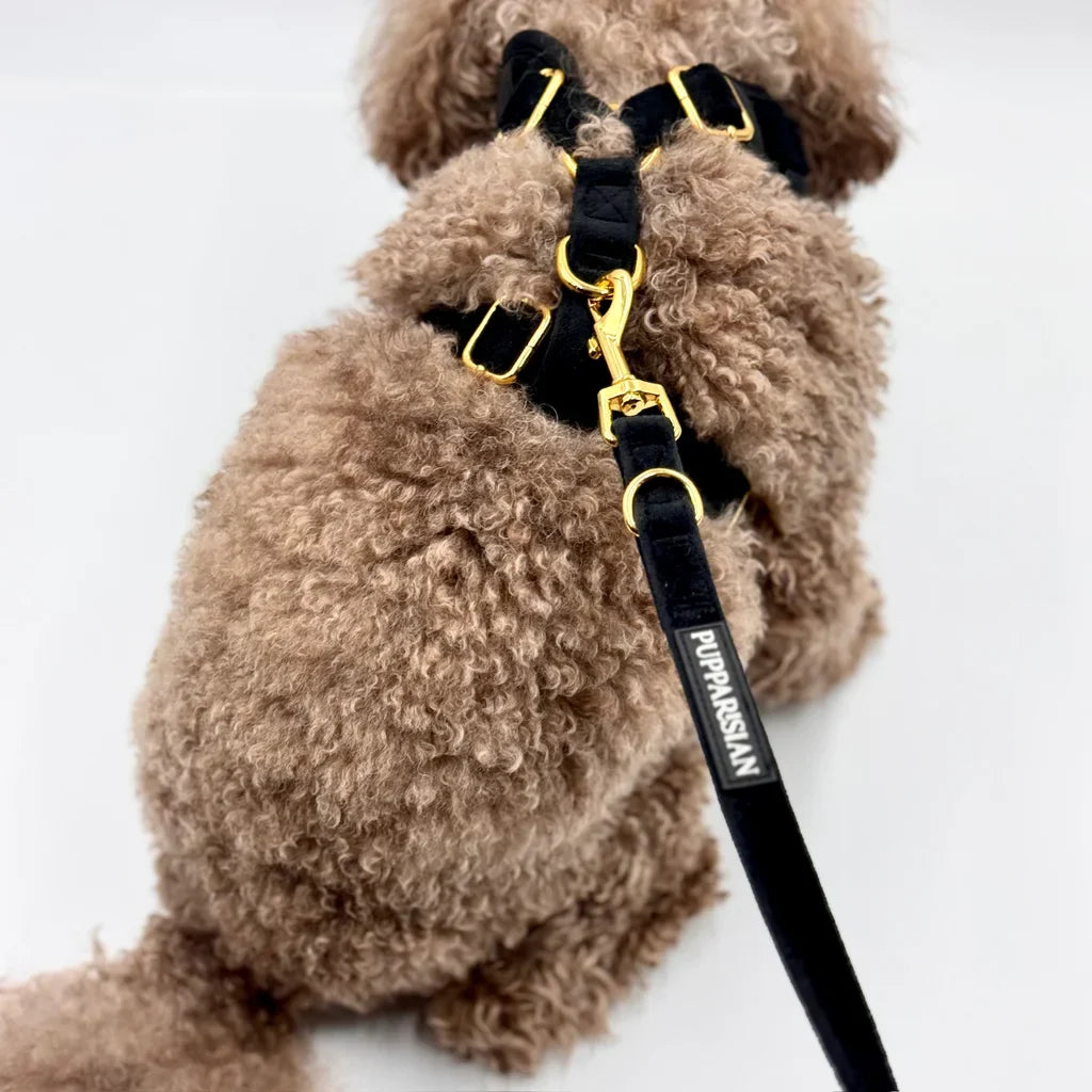 Sametové městské vodítko značky Pupparisian je elegantním a funkčním doplňkem pro každodenní procházky. Vyrobené z měkkého, ale odolného sametu v černé barvě poskytuje pohodlí i plnou kontrolu nad psem. Délka 190 cm zajišťuje dostatečnou volnost pohybu a zároveň bezpečnost. Zlaté kovové kování dodává vodítku eleganci a pevnost, zatímco praktické zapínání usnadňuje používání. Ideální pro městské procházky, toto vodítko spojuje styl a funkčnost a zajistí, že váš pes bude vždy vypadat módně.