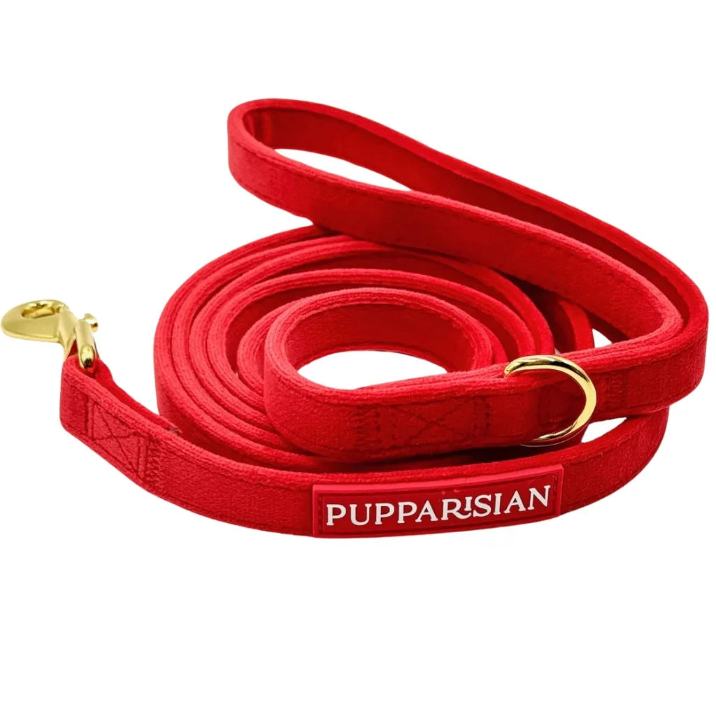 Luxusní sametové městské vodítko v červené barvě značky Pupparisian je ideálním doplňkem pro elegantní procházky po městě. Vyrobené z měkkého, ale odolného sametu nabízí pohodlí i plnou kontrolu nad psem a zároveň zajišťuje maximální komfort při používání. Stylový design v kombinaci s vysokou funkčností dělá z vodítka nepostradatelnou součást výbavy každého psa. Délka městského vodítka je 190 cm, což poskytuje dostatečnou volnost pohybu a zároveň bezpečí. Zlaté kovové kování dodává vodítku eleganci a odolnost.