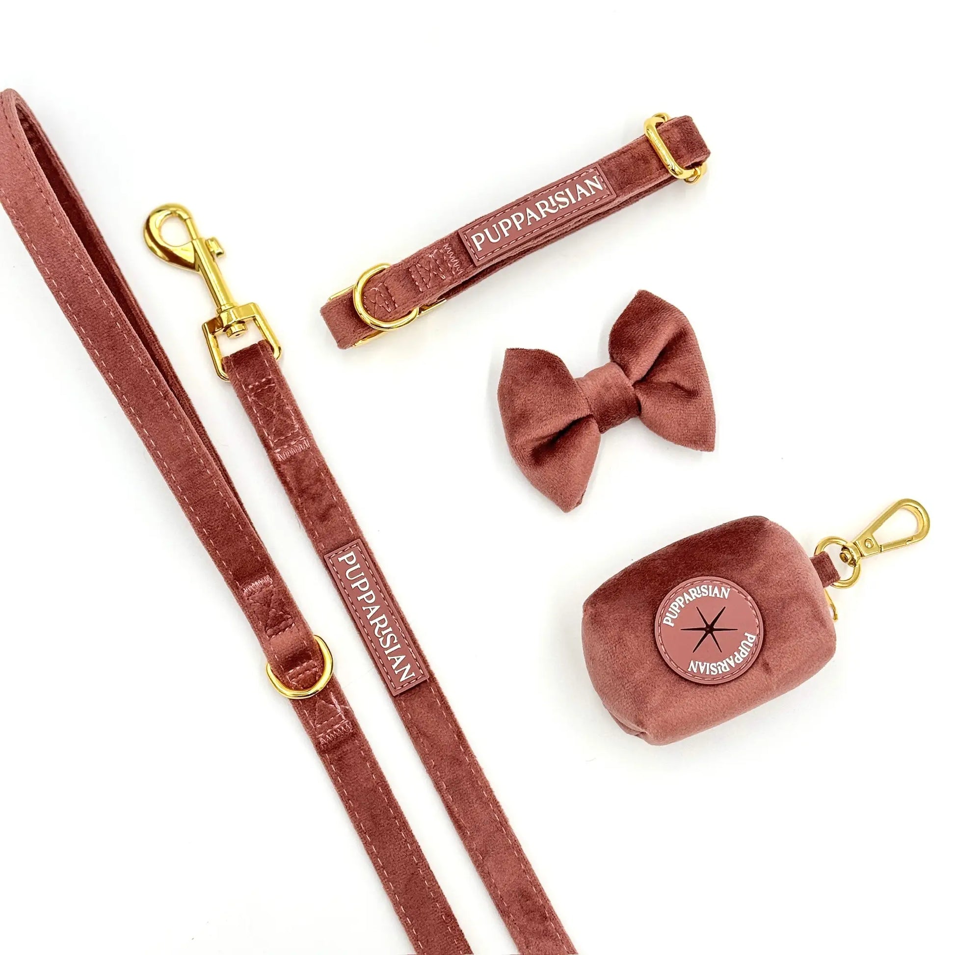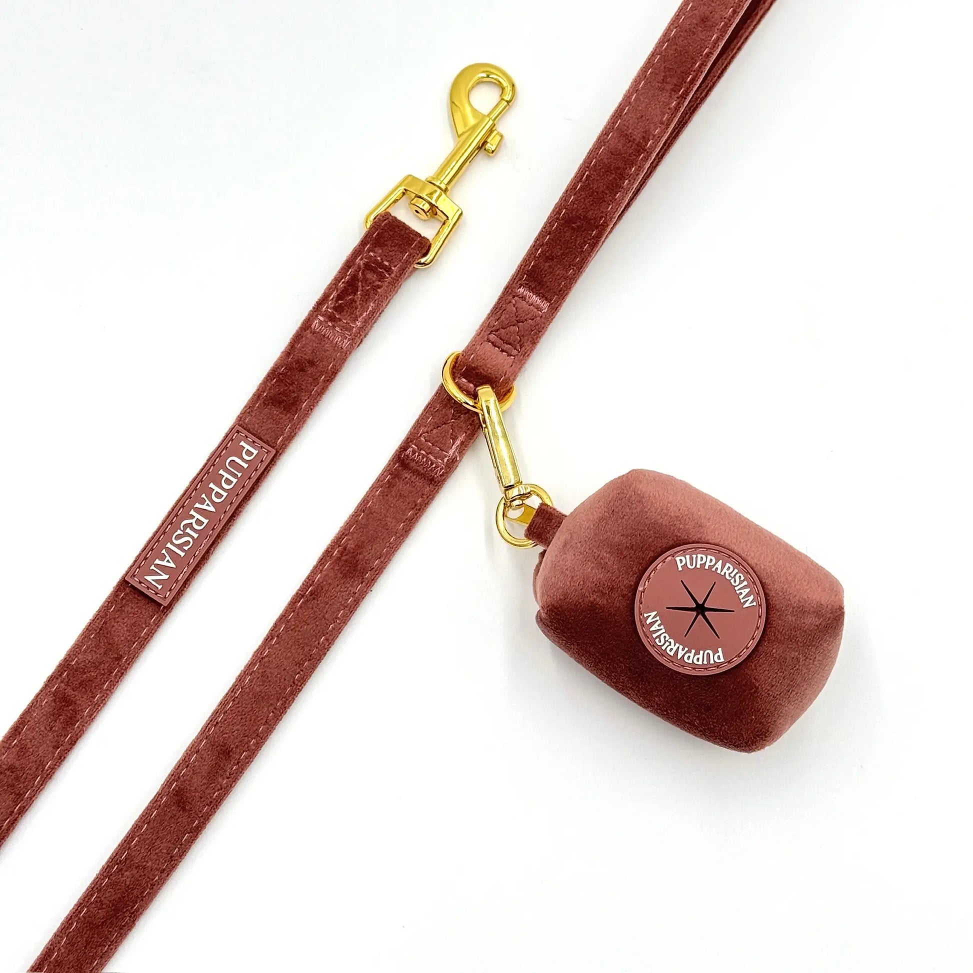Sametové městské vodítko pro psa – cihlově růžové 190 cm