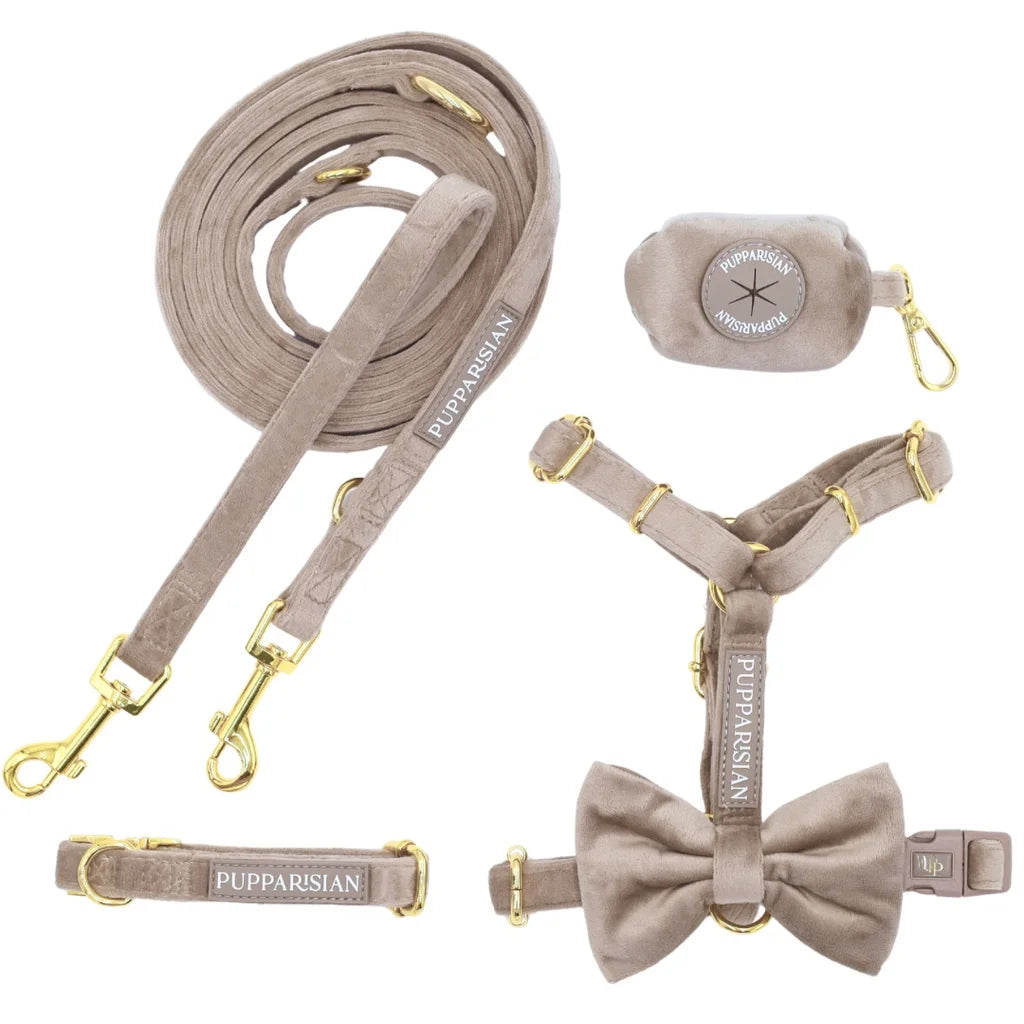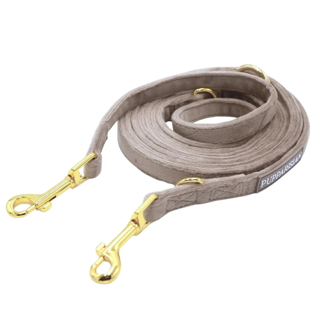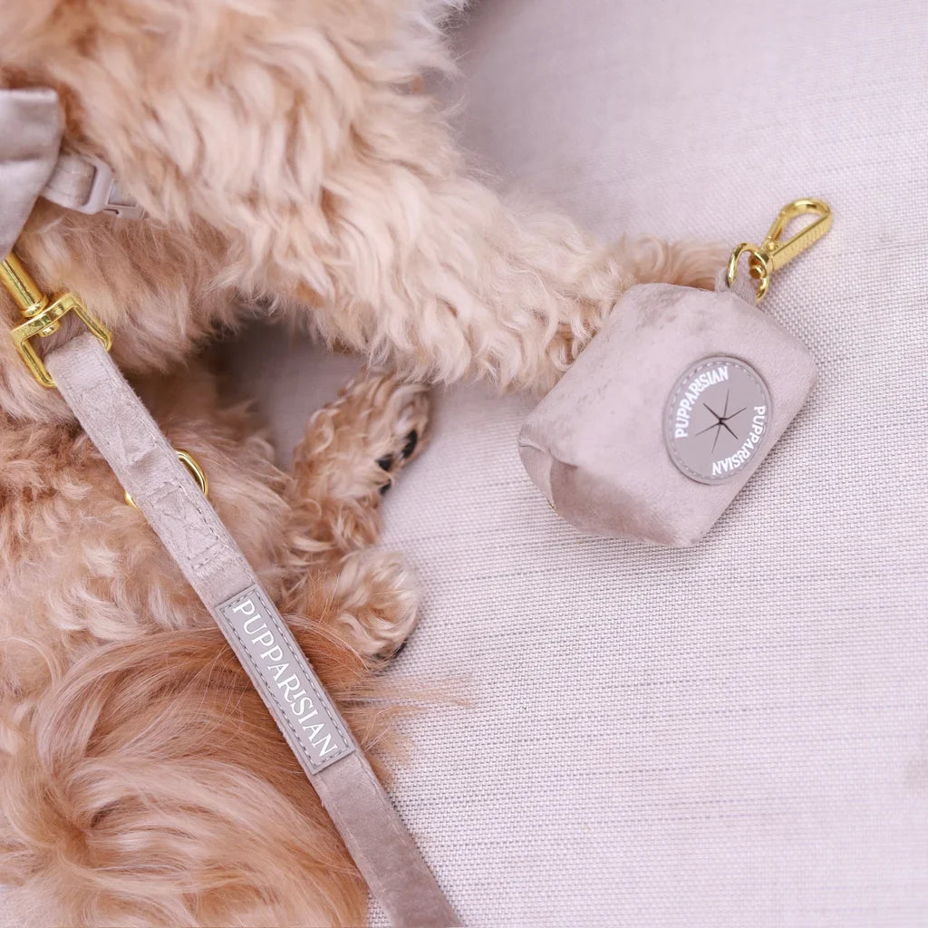 Vyrobené z luxusního, měkkého sametu je vodítko nejen stylové, ale také mimořádně pohodlné při každodenním používání. Béžová barva mu dodává nádech decentní elegance a skvěle ladí s ostatními doplňky ze stejné kolekce.