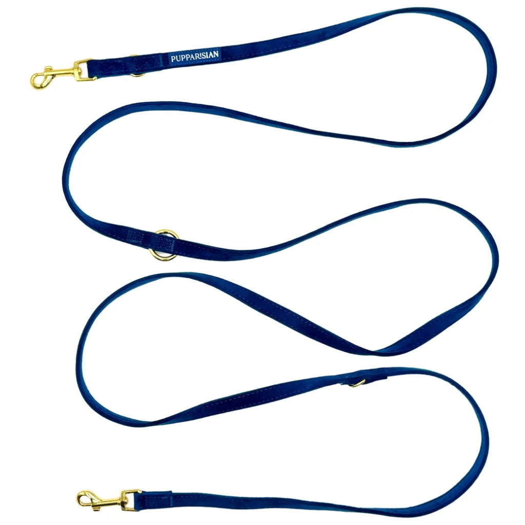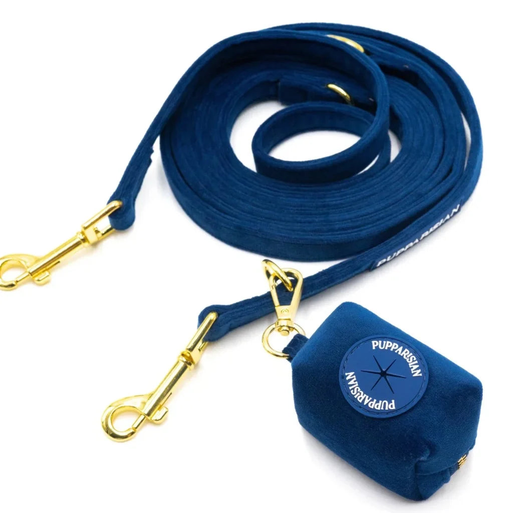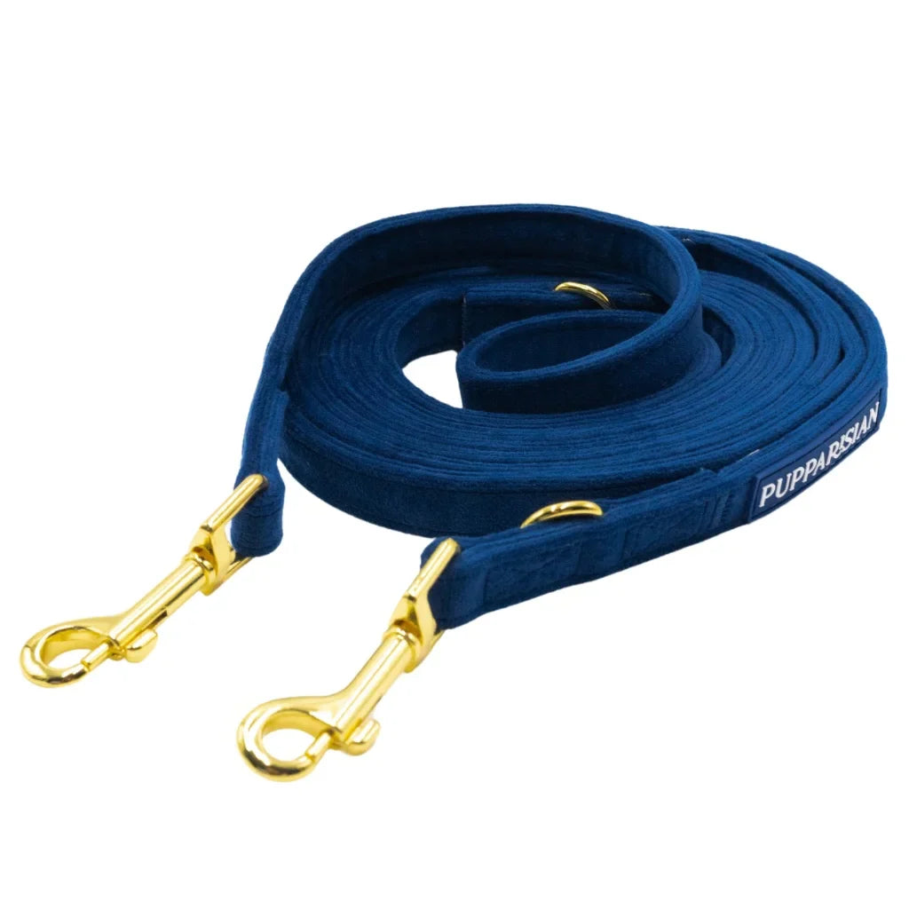 Luxusní přepínací vodítko značky Pupparisian v hlubokém odstínu tmavě modré je navrženo s ohledem na eleganci a univerzální využití. Díky délce 3 metry nabízí různé možnosti nastavení, takže se snadno přizpůsobí potřebám při procházkách, tréninku i návštěvách u veterináře. Vyrobené z nejkvalitnějšího sametu zajišťuje nejen odolnost, ale také komfort při používání. Zlaté kování dodává vodítku vytříbený charakter a zároveň pevnost, zatímco spolehlivé zapínání garantuje bezpečnost. Ideální volba pro majitele, kteří oceňují styl i funkčnost.
