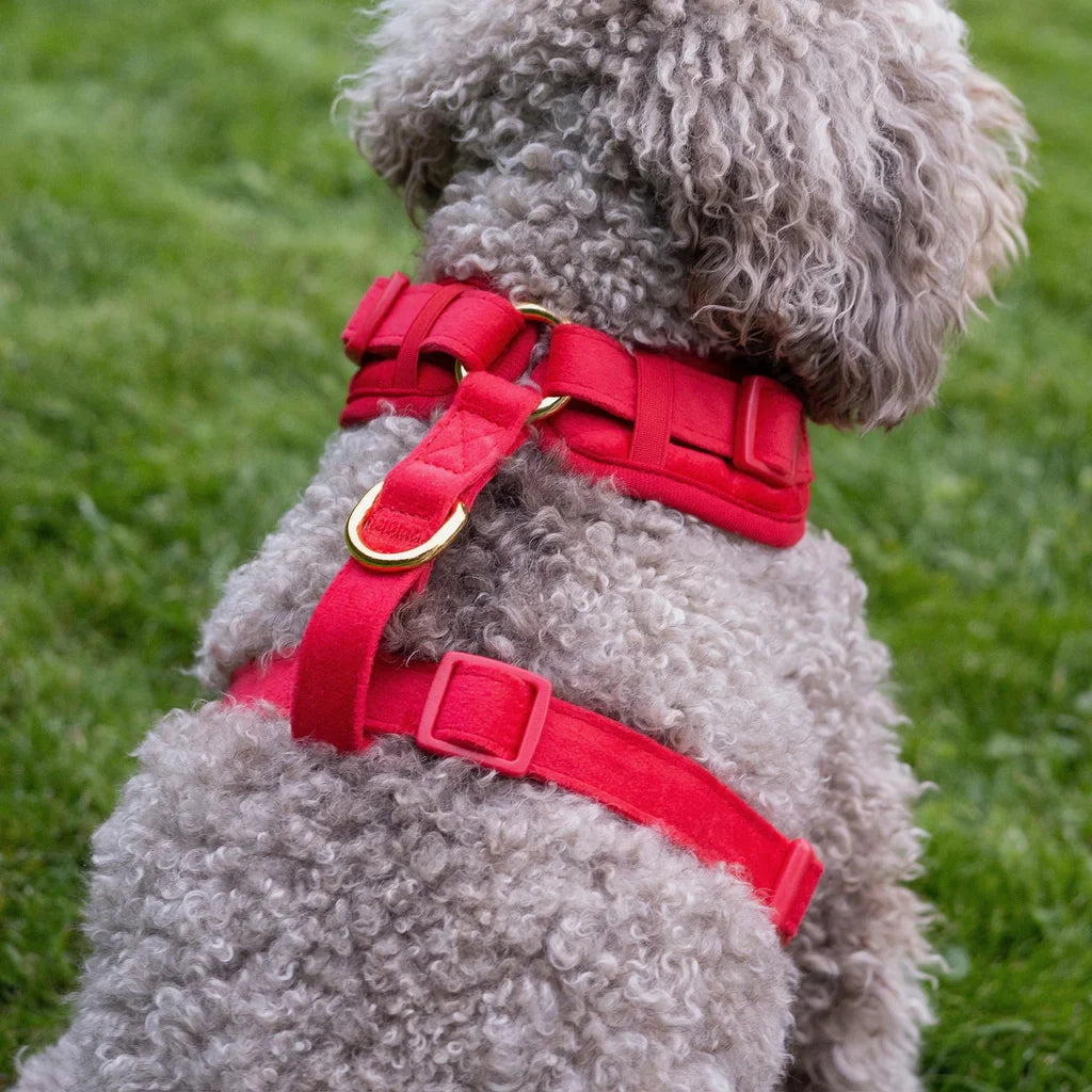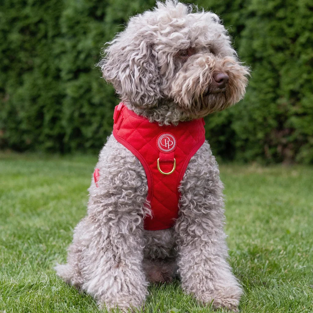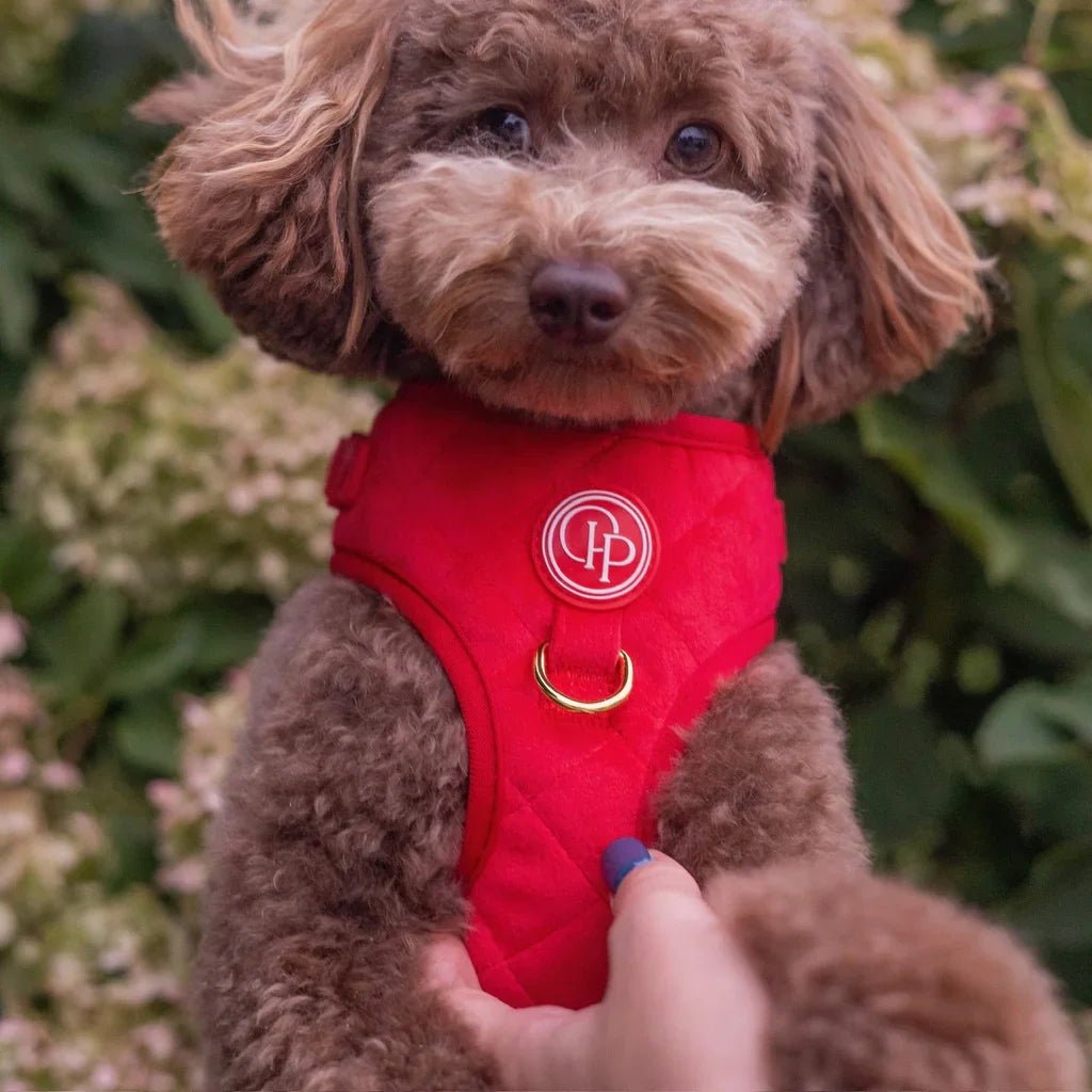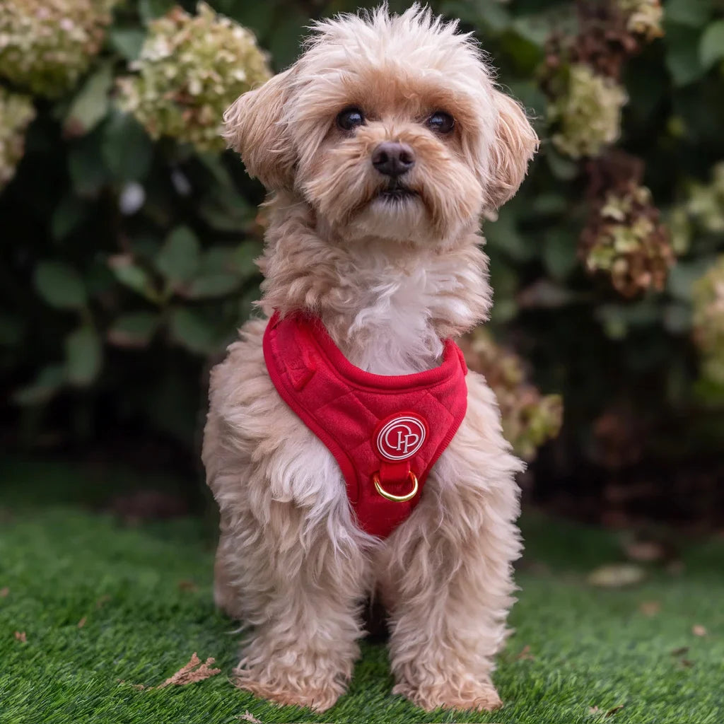 Sametový beztlakový postroj pro psa 2.0 – červený