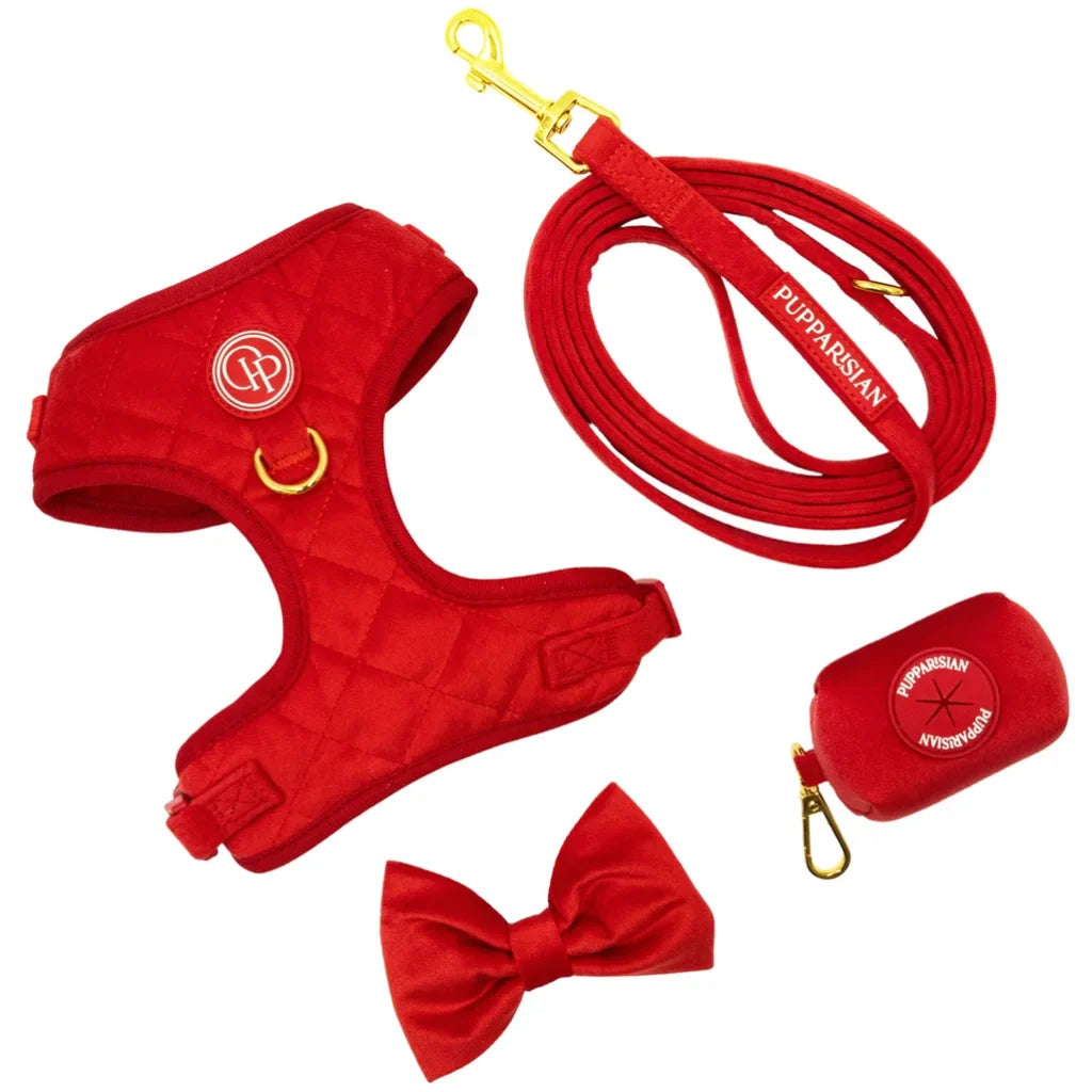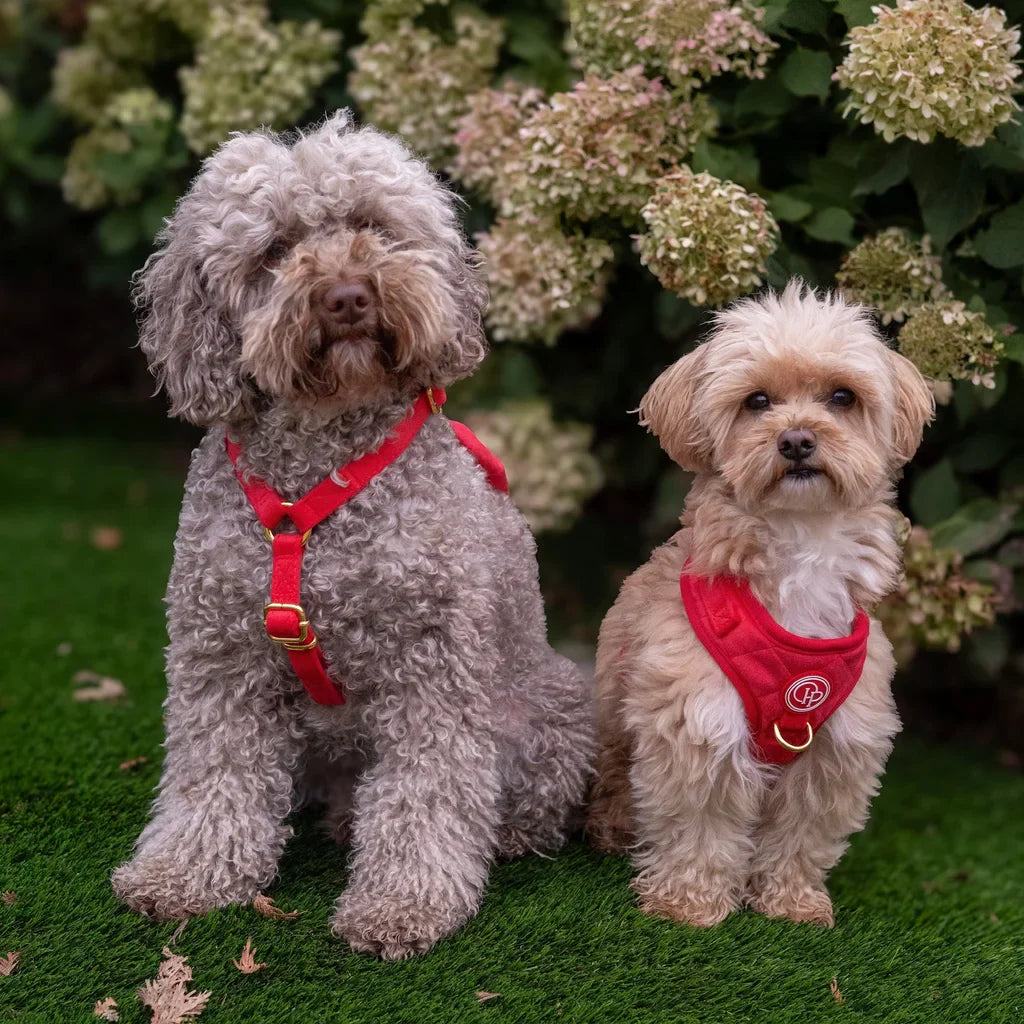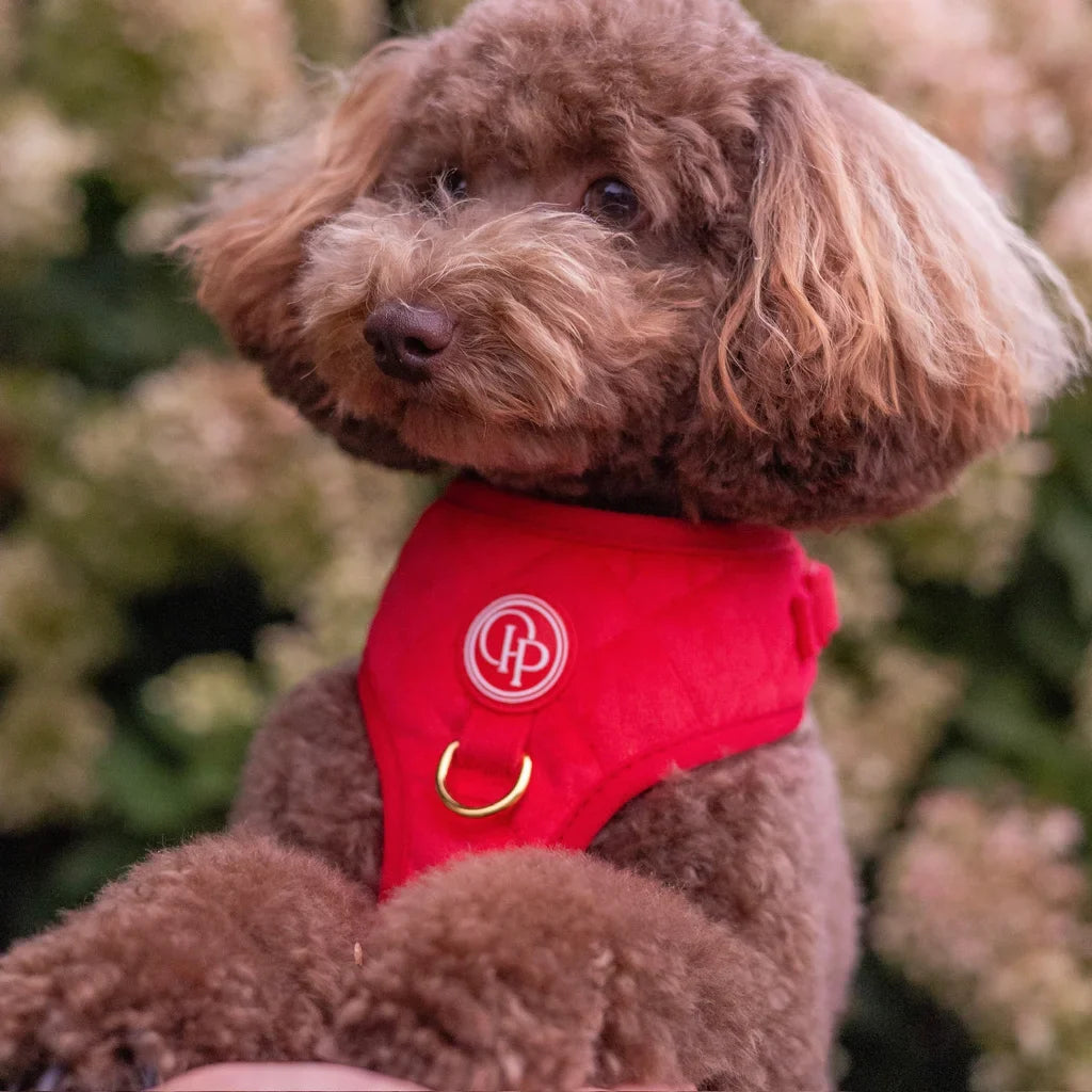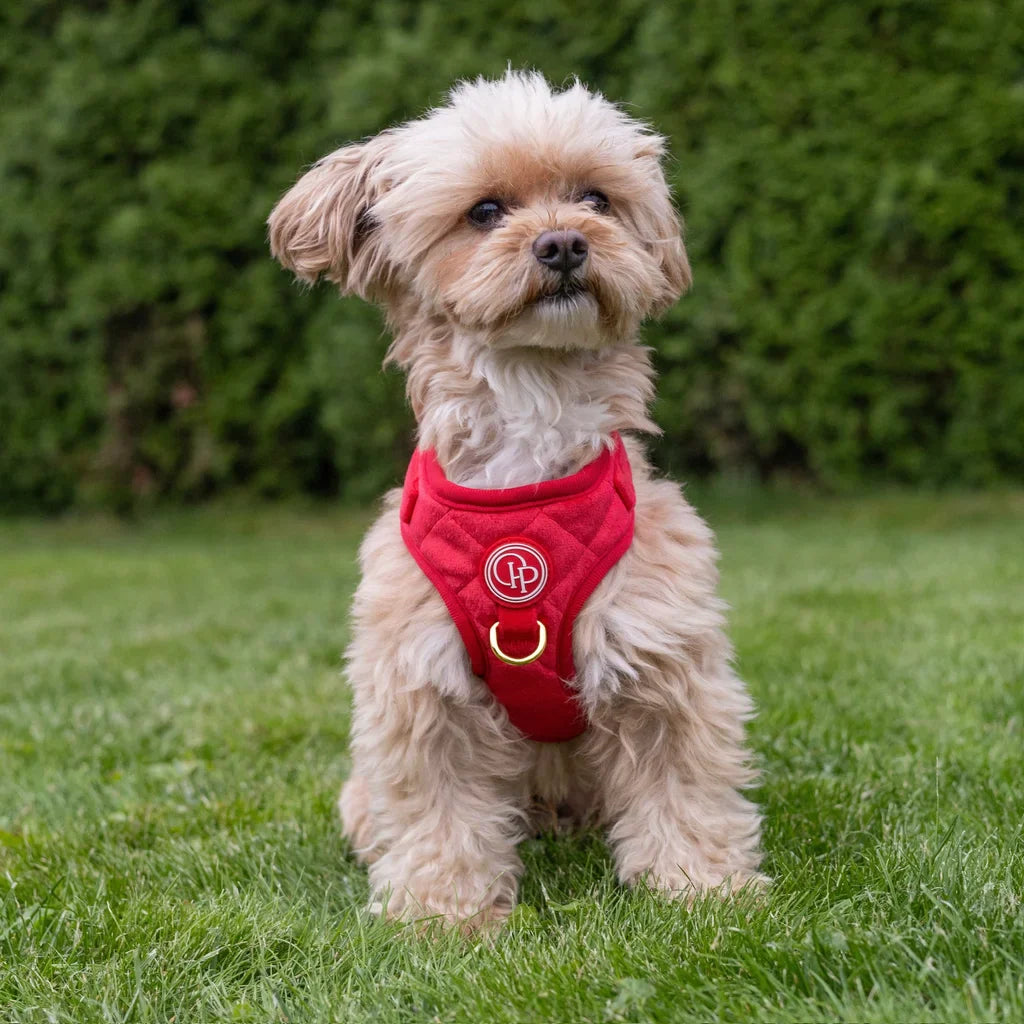 Sametový beztlakový postroj pro psa 2.0 – červený