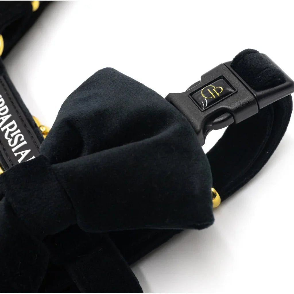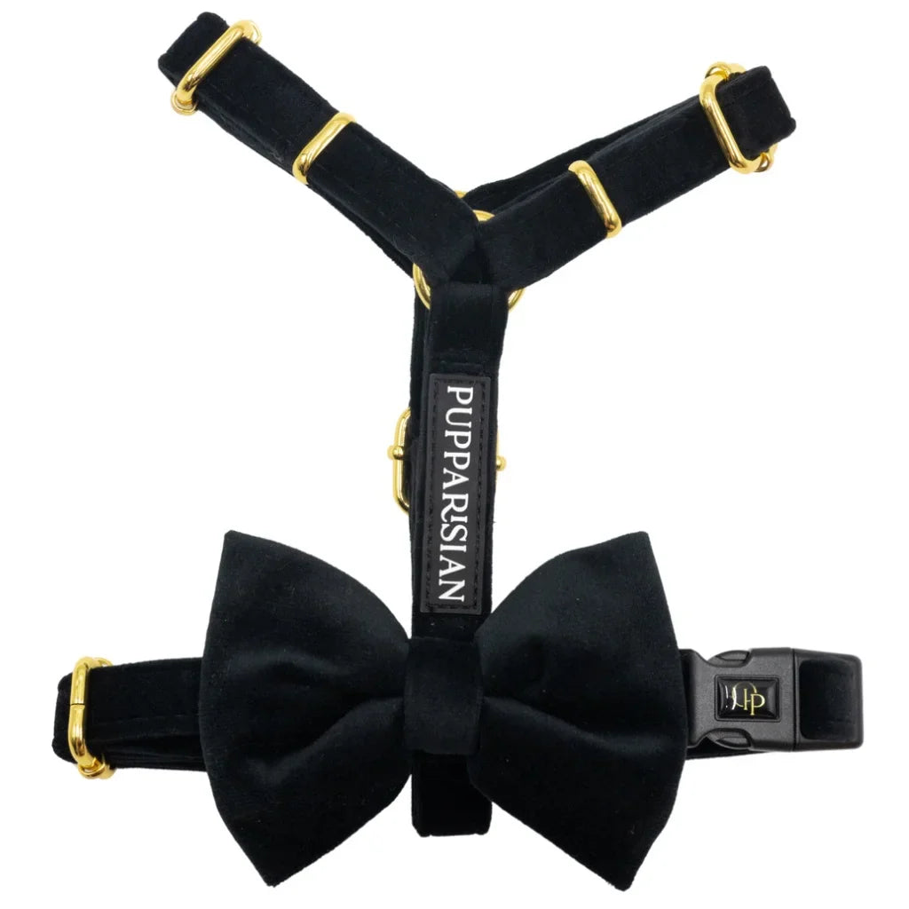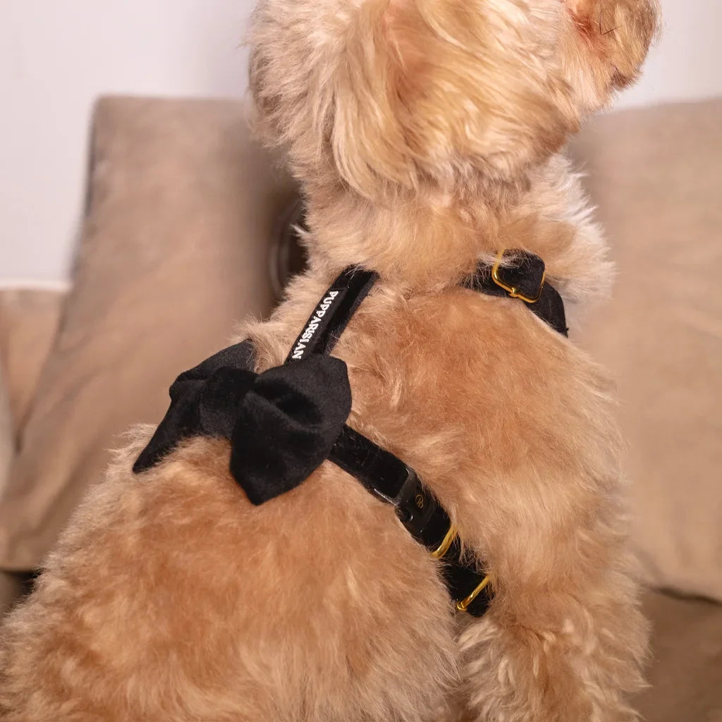 Sametový postroj typu guard pro psa s mašlí 2.0 – černý