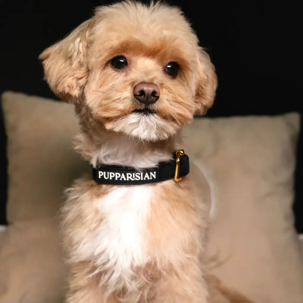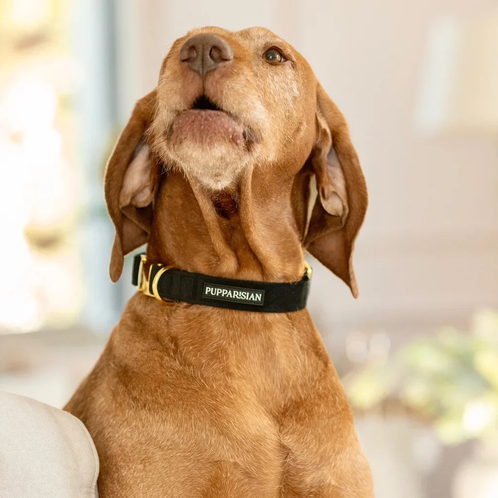 Sametový obojek pro psa značky Pupparisian je spojením luxusu a funkčnosti, ideální volbou i pro ty nejnáročnější mazlíčky. Vyrobený z měkkého sametu v černé barvě poskytuje pohodlí a dlouhou životnost, takže je skvělým řešením pro každodenní nošení. Nastavitelné provedení umožňuje dokonalé přizpůsobení obvodu krku psa, zatímco elegantní zlaté kování dodává obojku vytříbený vzhled. Tento stylový doplněk krásně podtrhne vzhled vašeho mazlíčka.