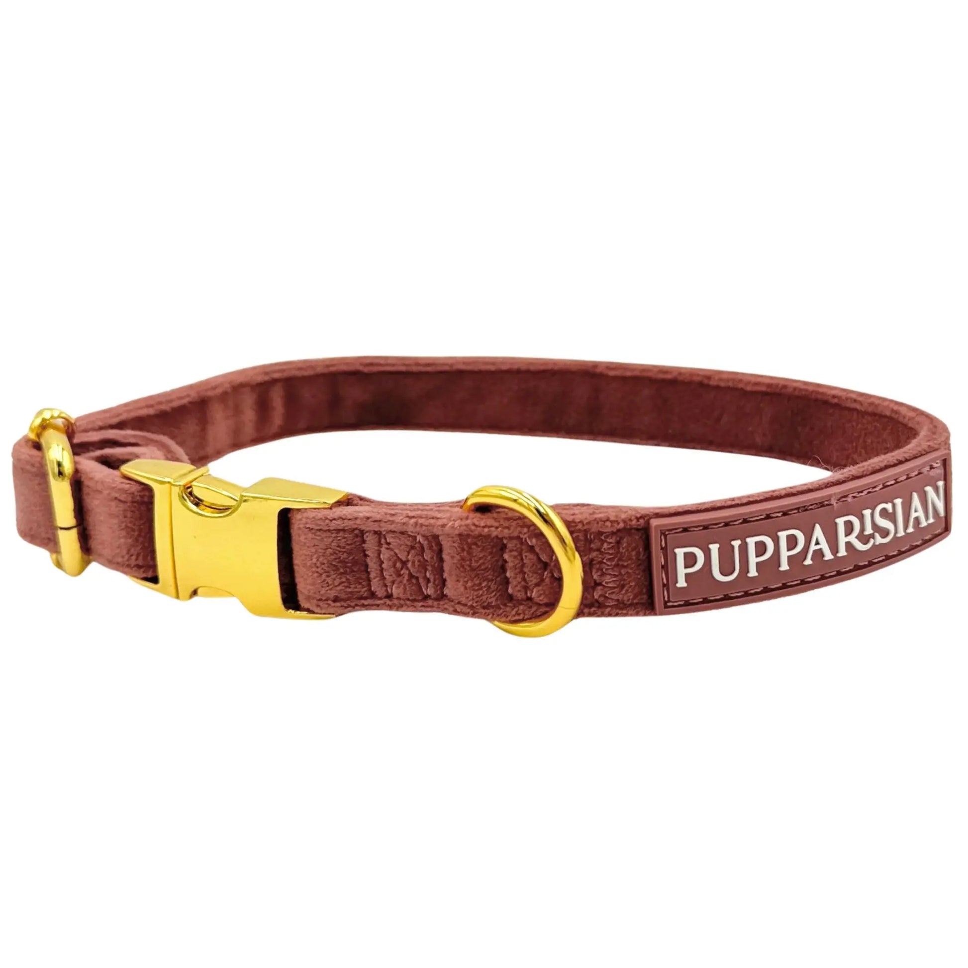 Luxusní sametový obojek pro psa v barvě cihlově růžové je výjimečný výrobek, který v sobě spojuje eleganci a komfort. Je vyroben z nejkvalitnějšího sametu, obojek je mimořádně měkký, což zaručuje maximální pohodlí pro vašeho mazlíčka.