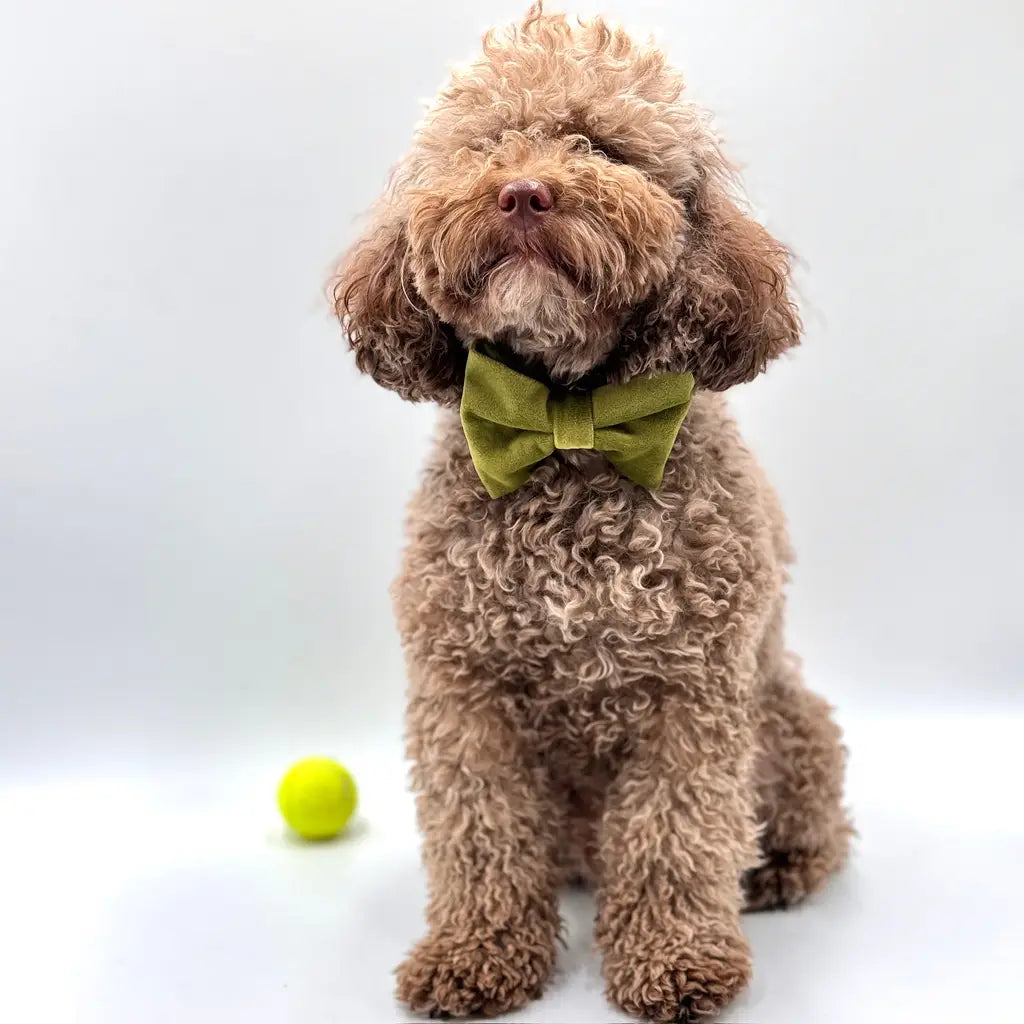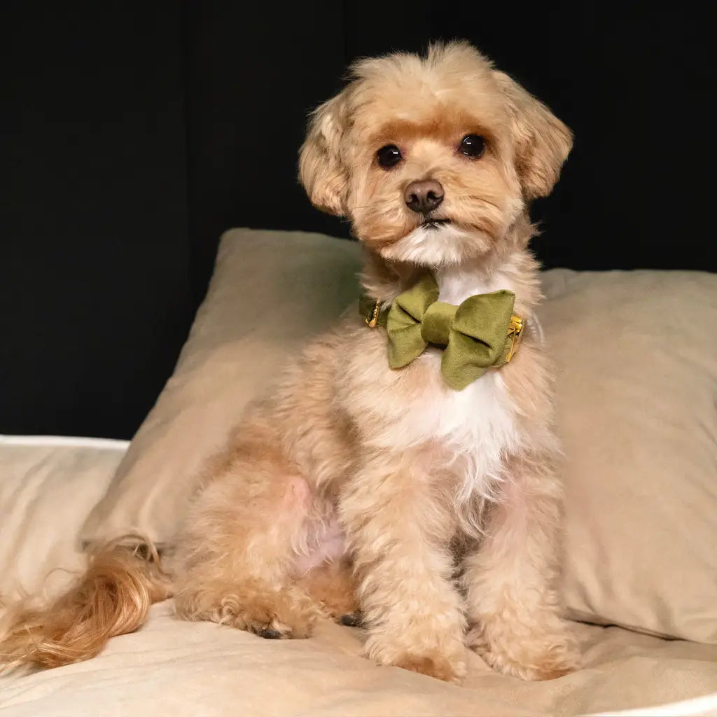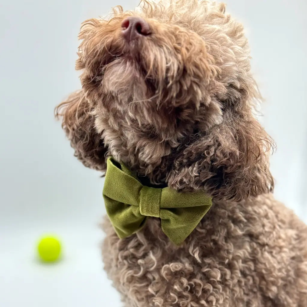 Sametový obojek s motýlkem pro psa – olivově zelený