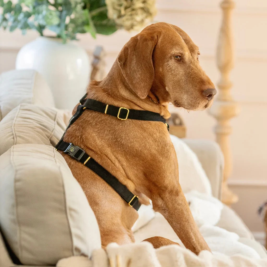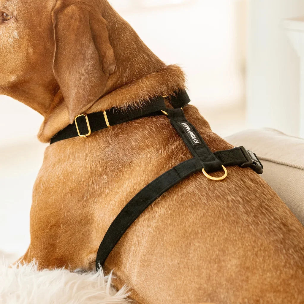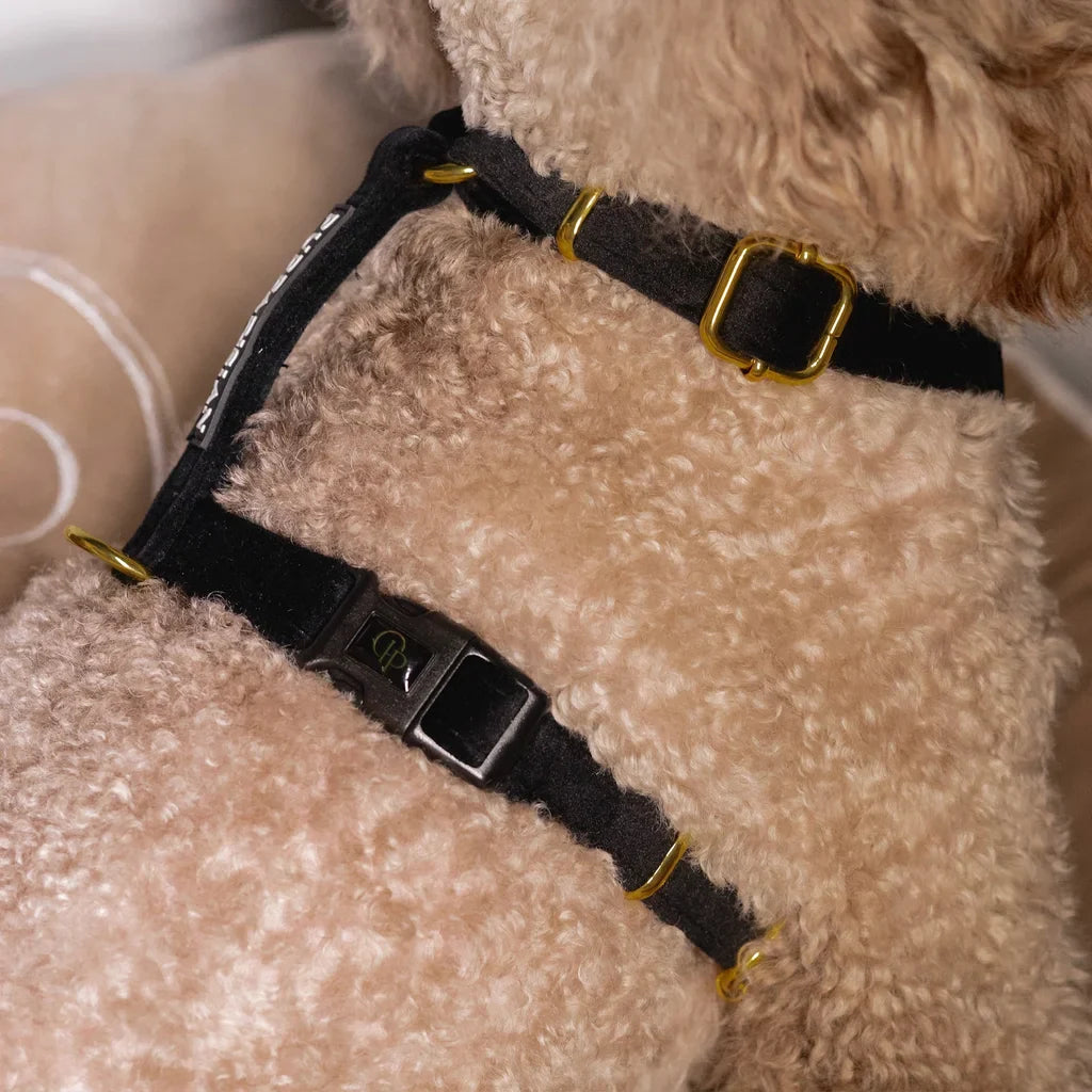 Sametový postroj typu guard značky Pupparisian v černé barvě je spojením elegance a funkčnosti, navržený s ohledem na pohodlí a bezpečnost vašeho psa. Vyrobený z měkkého, luxusního sametu zajišťuje pohodlné nošení, neomezuje v pohybu a nezpůsobuje oděrky. Provedení typu guard rovnoměrně rozkládá tlak, což minimalizuje riziko poranění a zároveň znemožňuje psovi samostatně se vyvléknout během procházek.