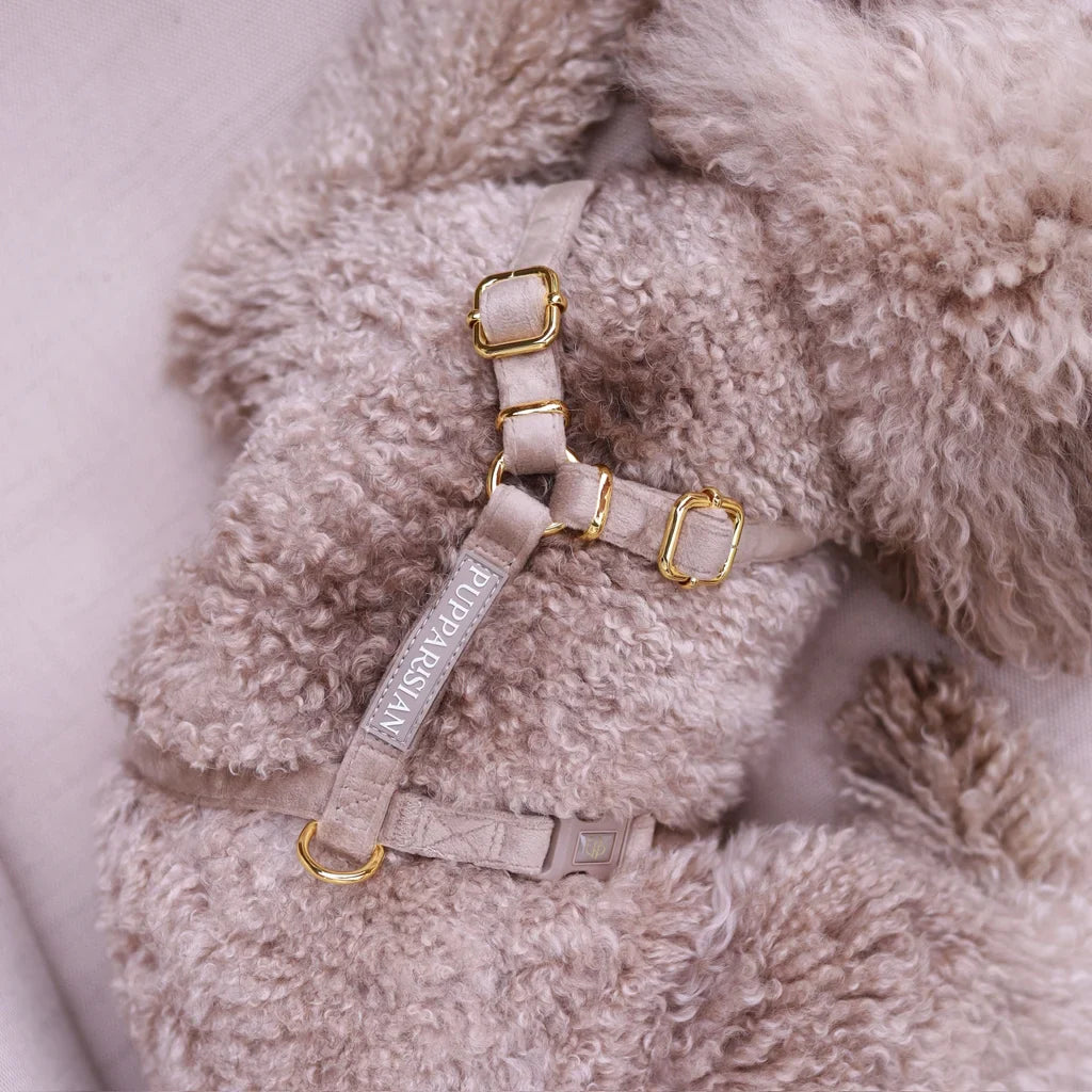 Béžový postroj typu guard od Pupparisian je dokonalým spojením elegance a pohodlí, navržený s ohledem na každodenní komfort a bezpečnost vašeho psa. Vyrobený z měkkého, na dotek příjemného sametu působí mimořádně stylově, aniž by ztrácel na praktickém využití.